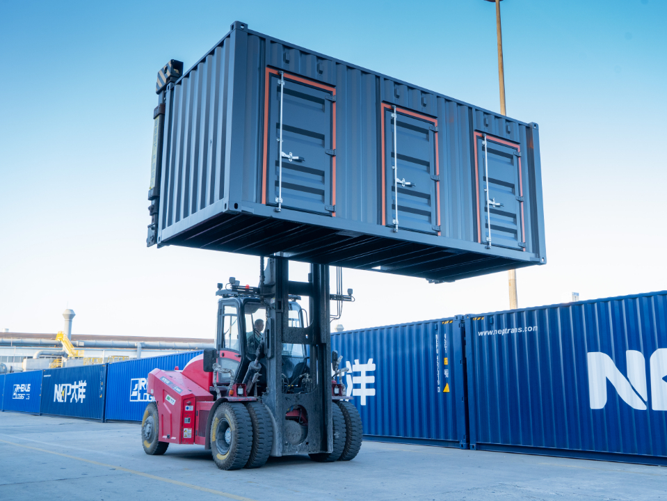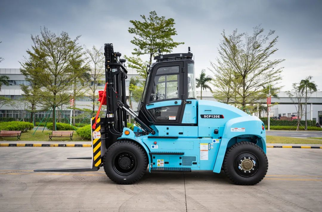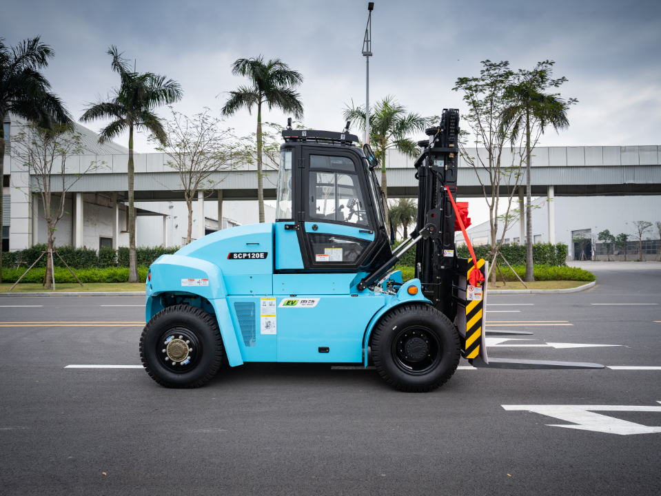 SCP120E纯电动重叉额定载荷12t,可根据客户需求配置114或141kwh的磷酸铁锂电池。
