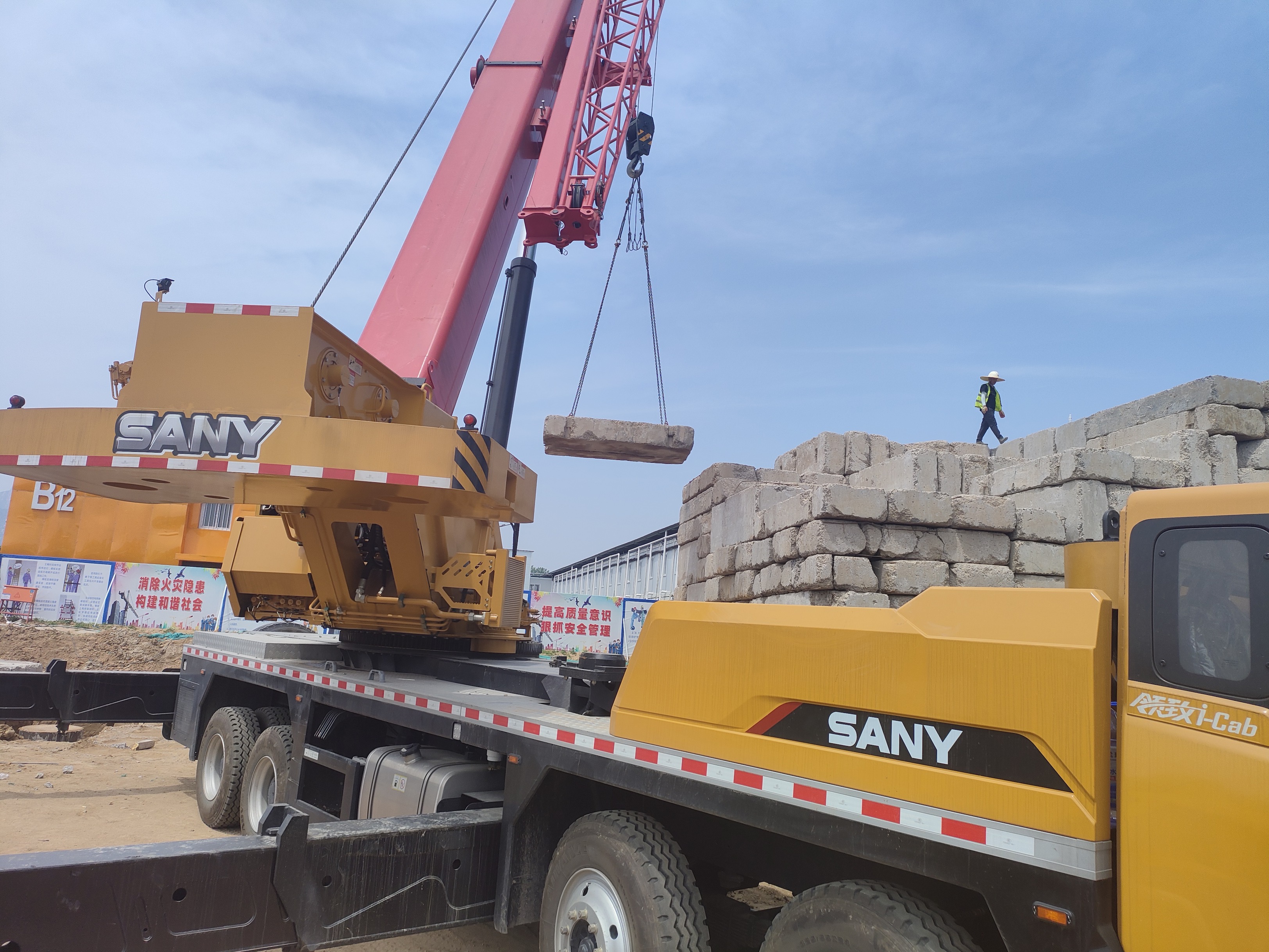 在山东某工地,STC550T5I-8连续吊载10次总重量为7t的试压块(单块试压块为3.5t/4.8t),用时为16min。