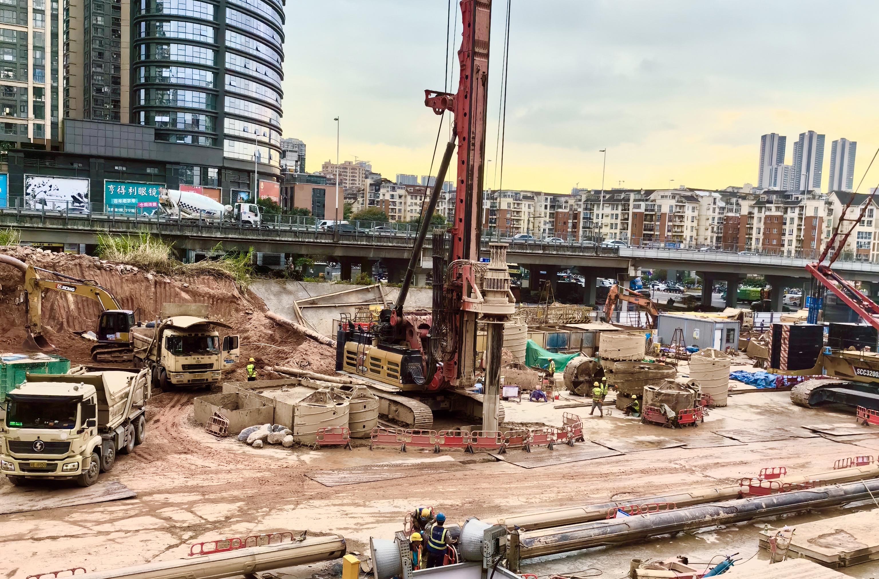 近日,好体育投注官网旋挖机群参建深圳深大城际工程2标五和站施工,工程现场集结了好体育投注官网SR415、SR445、SR525Pro四台大吨位旋挖钻机,负责五和站桩基础施工。
