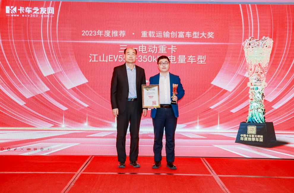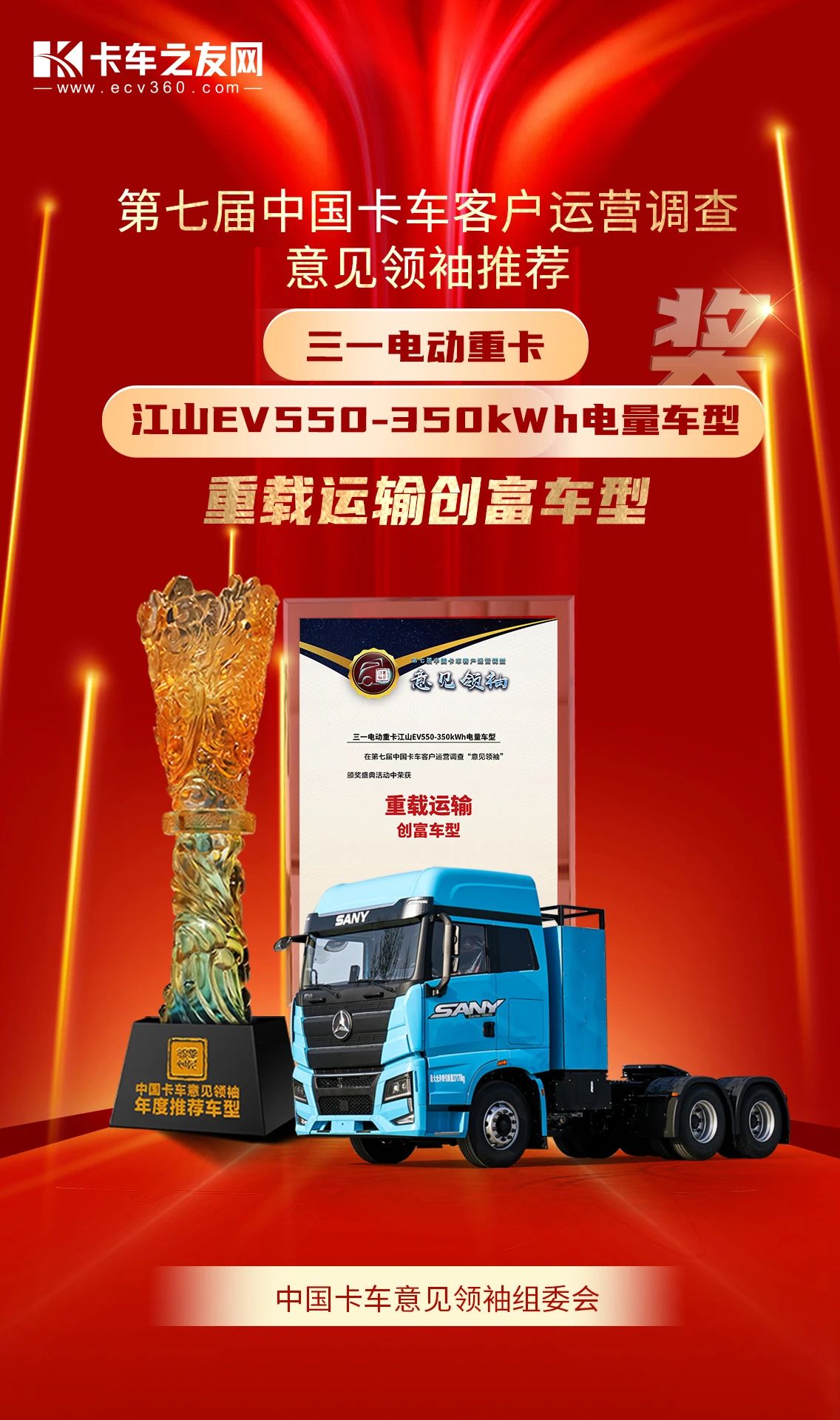 好体育投注官网电动重卡江山EV550-350kWh电量车型荣获本届运营调查意见领袖推荐的“重载运输创富车型大奖”。