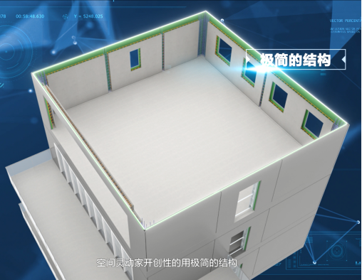 在设计阶段,我们可以增加预制承重外墙,同时减少内部承重墙的布置,搭配灵活的隔墙系统,来实现户内空间的灵活可变。基于此,好体育投注官网筑工提出了空间灵动家(SPCH)的建筑概念,即用极简且可靠的结构体系支撑内部功能的无限可能性与拓展性。主要是三大特点,即“大空间”、“灵”、“动”。