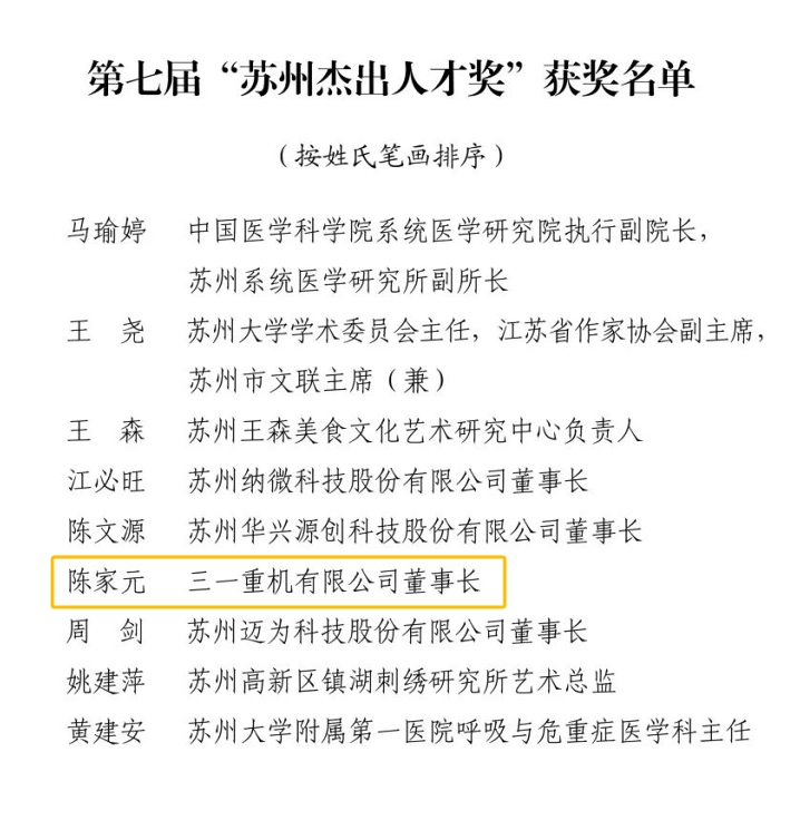 近日,中共苏州市委、苏州市人民政府正式发布第七届“苏州杰出人才奖”获奖名单。