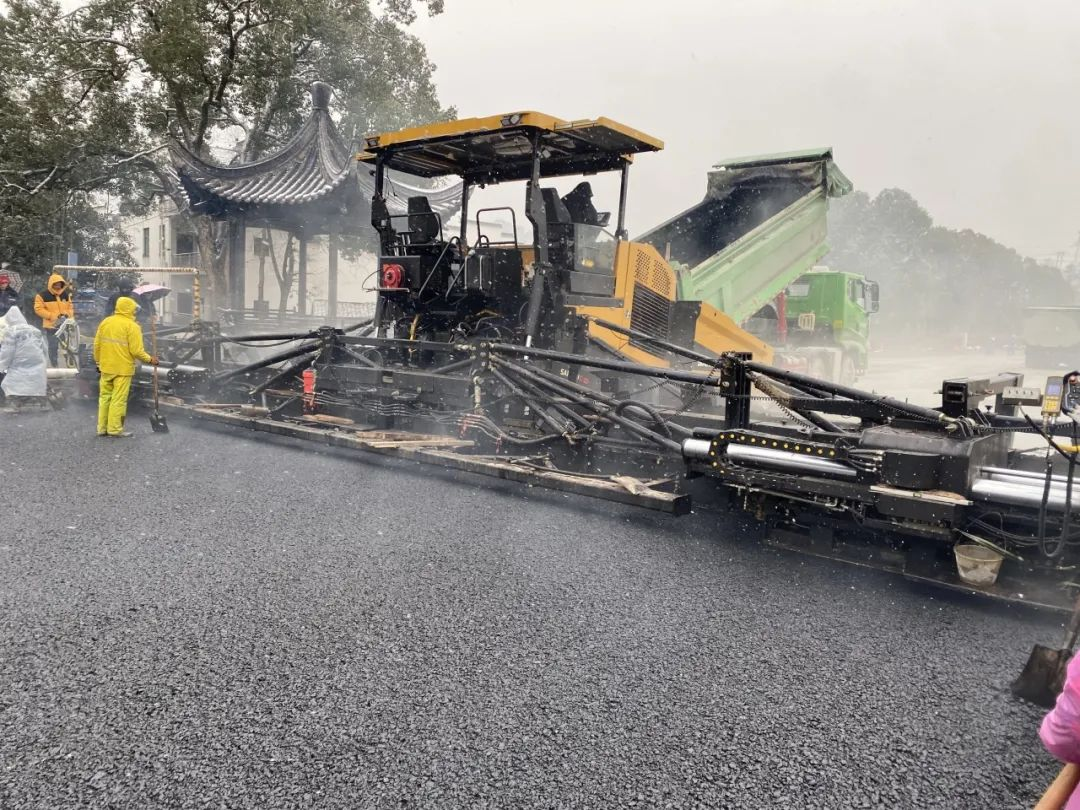 1月22日,婺源的天空飘起鹅毛大雪,但金庸大道段提升项目上仍旧一片“火热”。冒着滚烫热气的沥青料从料车中倾泻而下,好体育投注官网SAP200C-10大宽度摊铺机徐徐前行,在大雪纷飞中铺筑出一条平顺齐整、热浪滚滚的黑色路面。