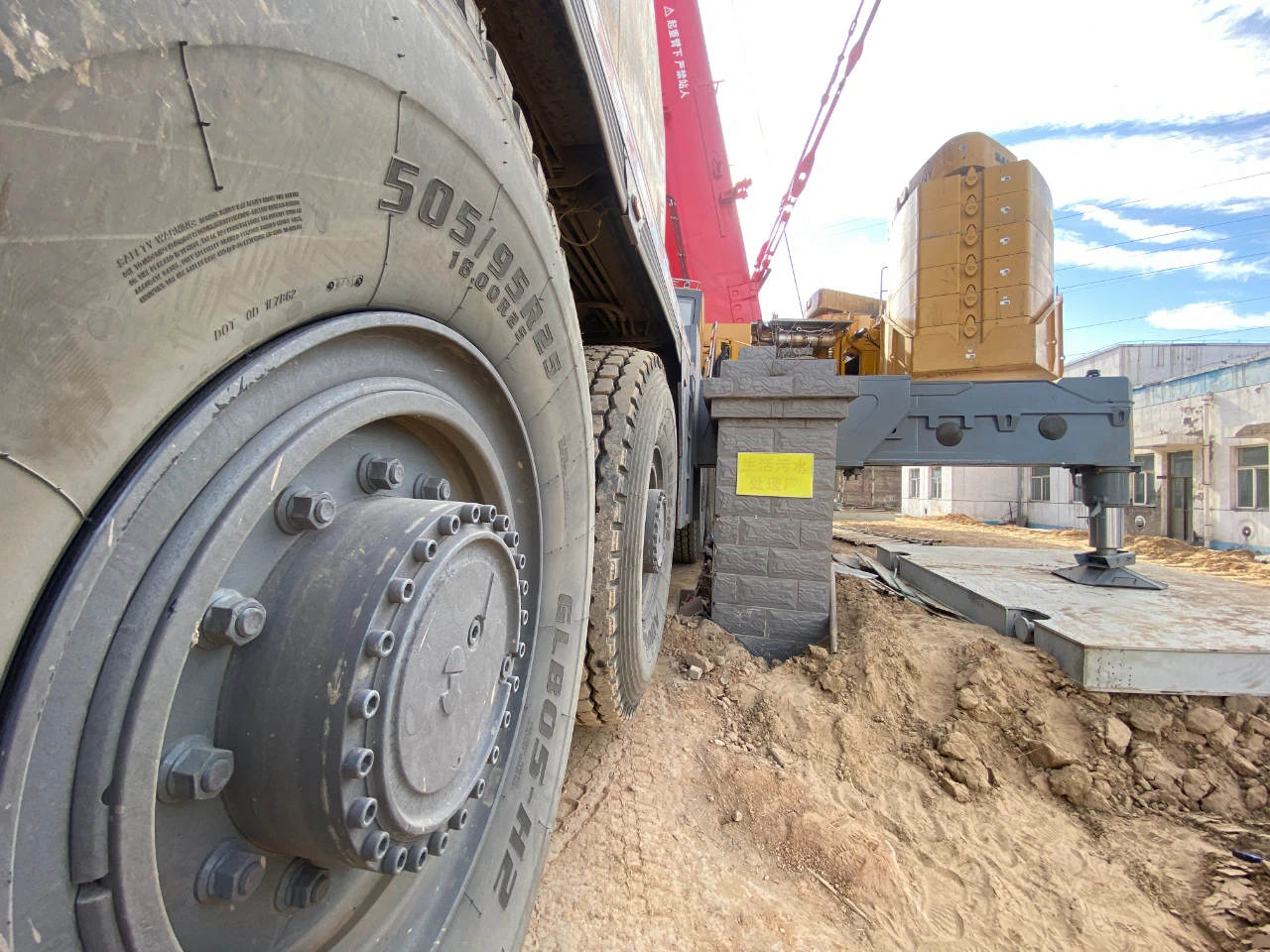 准备要吊装的钢桁架位置也十分尴尬,刚好“嵌在”取热车间和场地围栏中间,因此,留给SAC3500T的空间也所剩无几,只能停放在暖气管沟附近。为了防止吊车荷载引起土方变形,施工方起开了暖气管沟盖板,在管沟内回填土方。