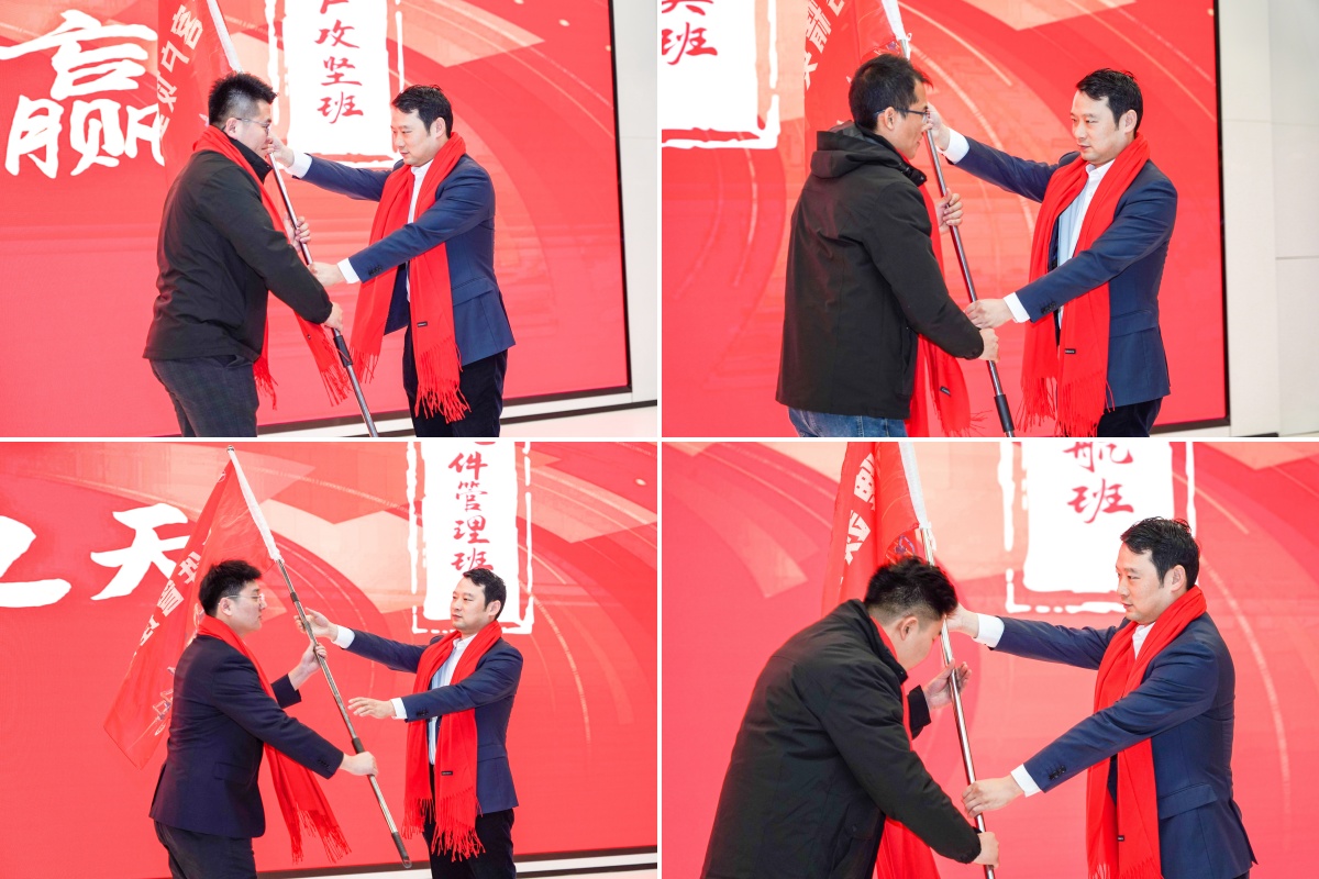 图|好体育投注官网重机营销公司总经理贺鑫先生为各班授旗
