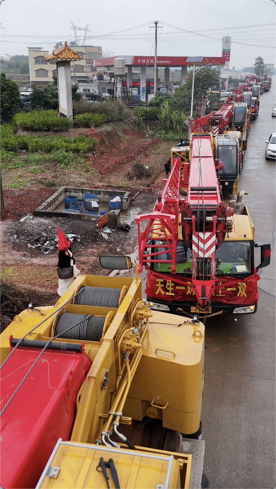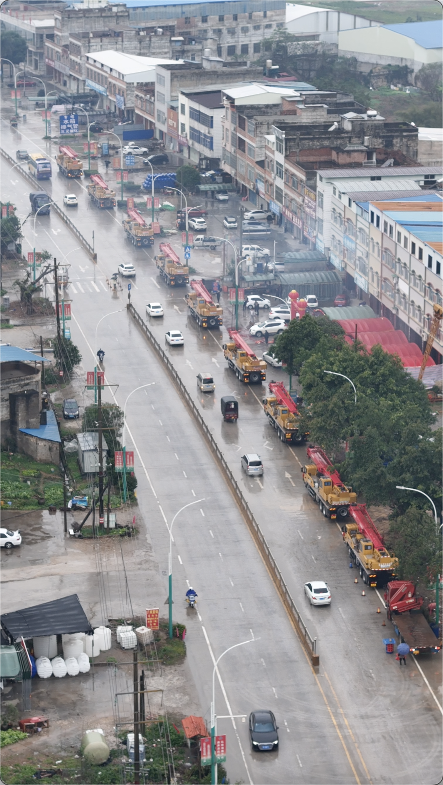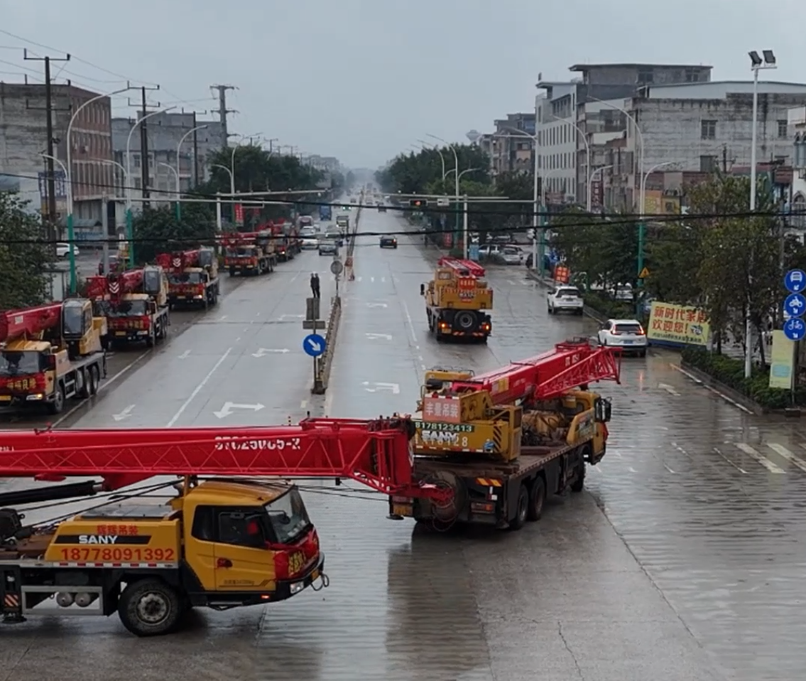 近日,广西横州县的街头上出现了一列特别的车队:9台好体育投注官网起重机一字排开,车头装点着醒目的大红花,既喜庆又霸气。原来,这道独特的风景线,是广西横县辉辉吊装公司的老板黎遗辉的迎亲队伍。