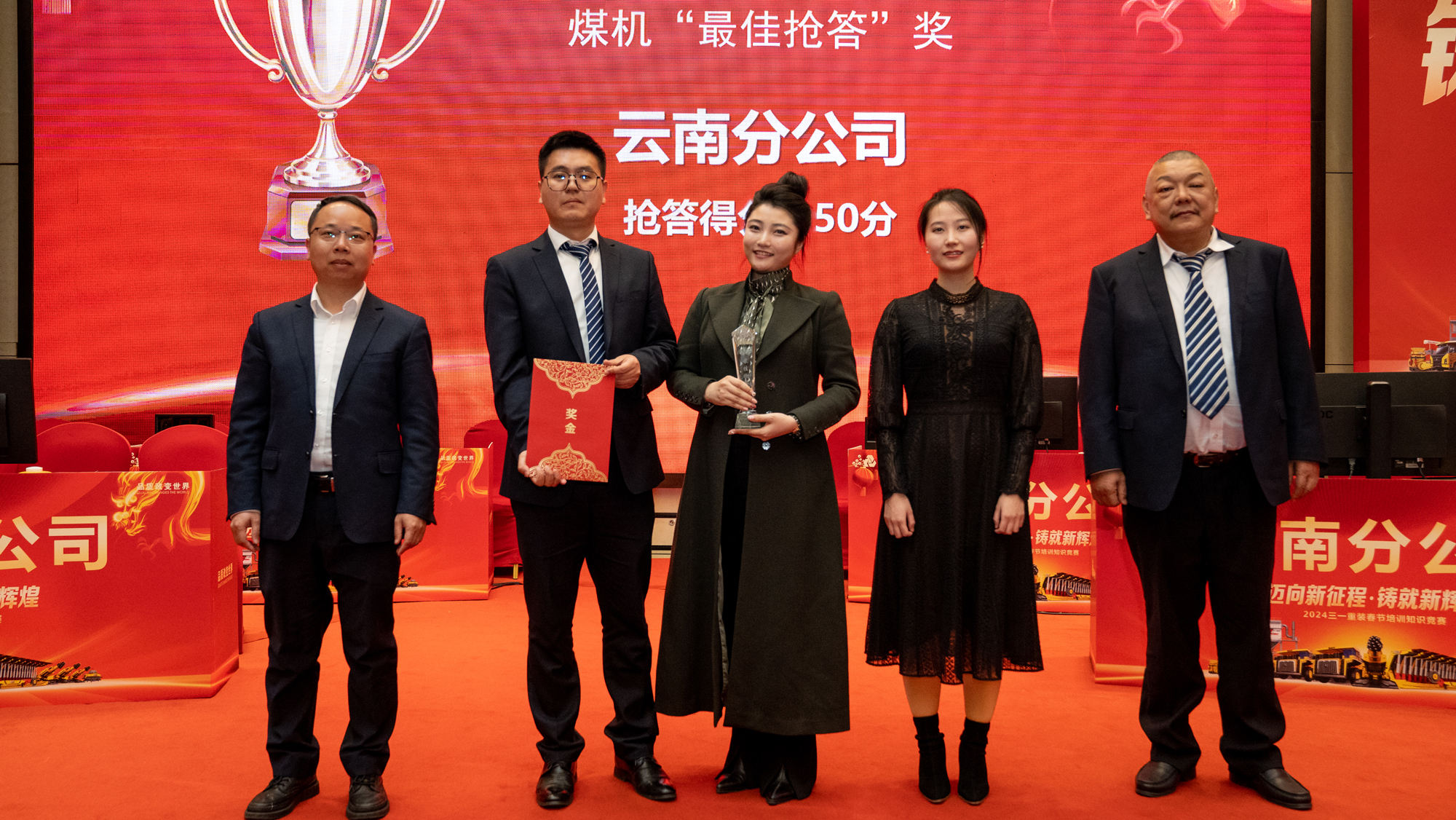 2月17日,好体育投注官网重装营销公司2024年度春节培训知识竞赛在沈阳圆满落下帷幕。好体育投注官网重装董事长戚建先生、采掘研究院院长尹力先生、营销公司总经理孙郝先生等事业部的主要领导作为评委出席了本次比赛,14家分公司作为参赛代表队,为现场的评委和直播间的好体育投注官网同仁们献上了一场精彩的对决。本次知识竞赛是营销公司针对一线推出的特别培训活动,旨在提升营销人员的内在素养、深刻了解产品,从而为一线赋能。比赛流程首次采取“全盲选”模式——即人员抽签盲选、上场顺序盲选和竞赛内容盲选,除了传统的演讲比赛外,还增加了车轮必答赛和竞速抢答赛,充分考验了参赛选手的记忆力、敏捷力、判断力和团队配合,现场比拼十分激烈。