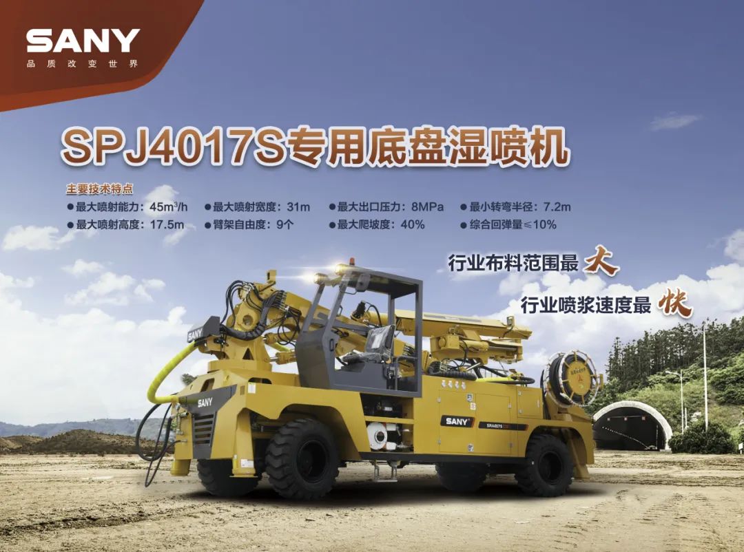 据了解,好体育投注官网SPJ4017S型湿喷机是目前行业布料最广(最大喷浆高度17.5米),喷浆效率最快(最大理论喷射方量45m³/h,吸料效率高达95%)的设备。另外,因为具备湿式工程车桥、拥有四驱四转向蟹行的技能,这款产品也成为了目前行业最灵活的工程喷浆设备。