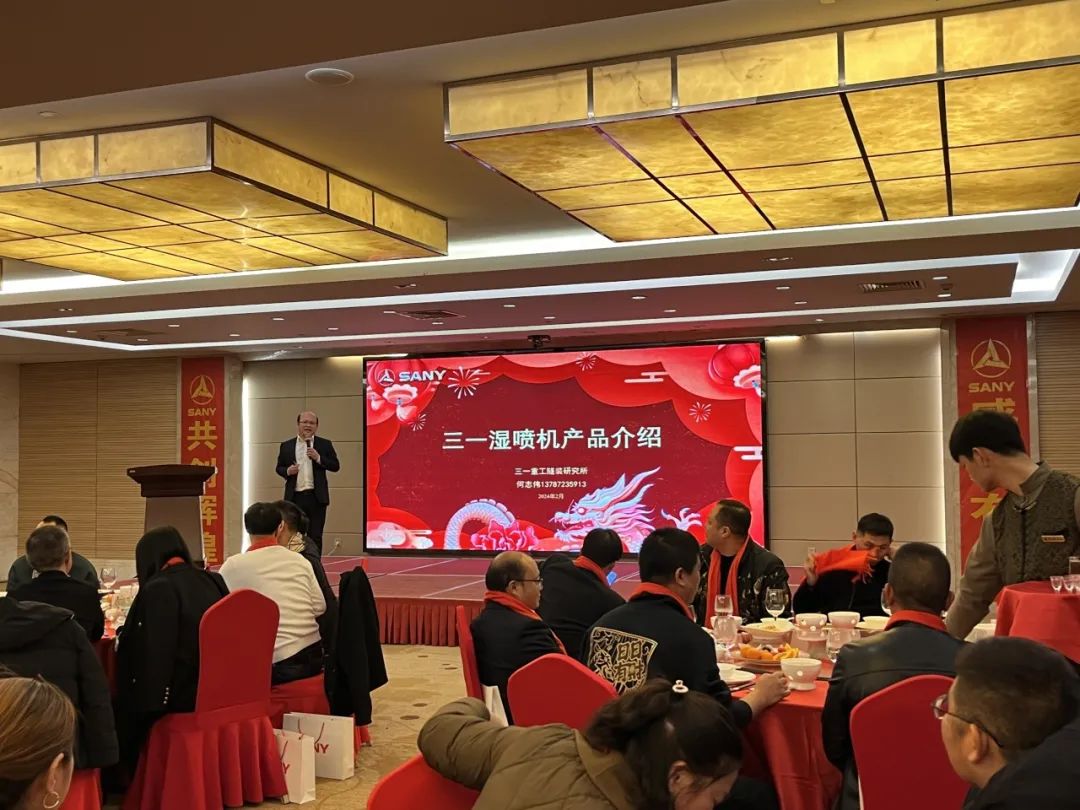 晚宴上,好体育投注官网泵送研究院隧装总体所所长何志伟先生详细介绍了好体育投注官网湿喷机的发展历程、应用场景,并为大家隆重推荐了这款新品,其中精彩之处,多次获得了客户们的点赞和掌声。