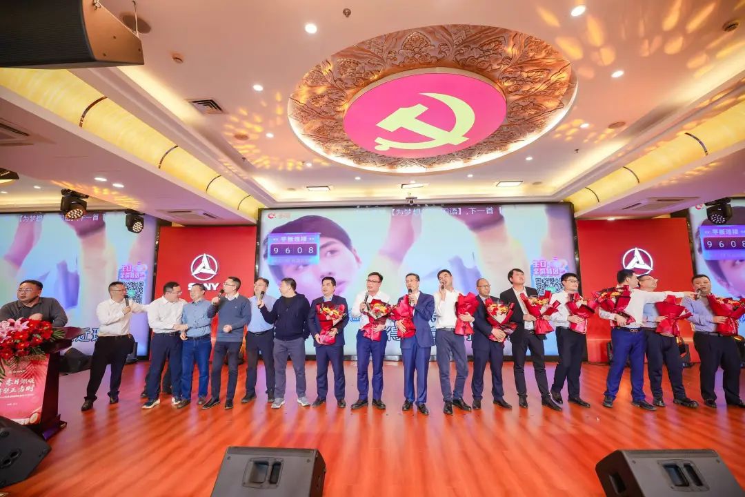 向儒安先生、王伟先生等集团领导与各代理商董事长/分公司总经理领唱歌曲《为梦想领跑》,现场每个人的脸上都洋溢着坚定的信念和对未来的无限期待。