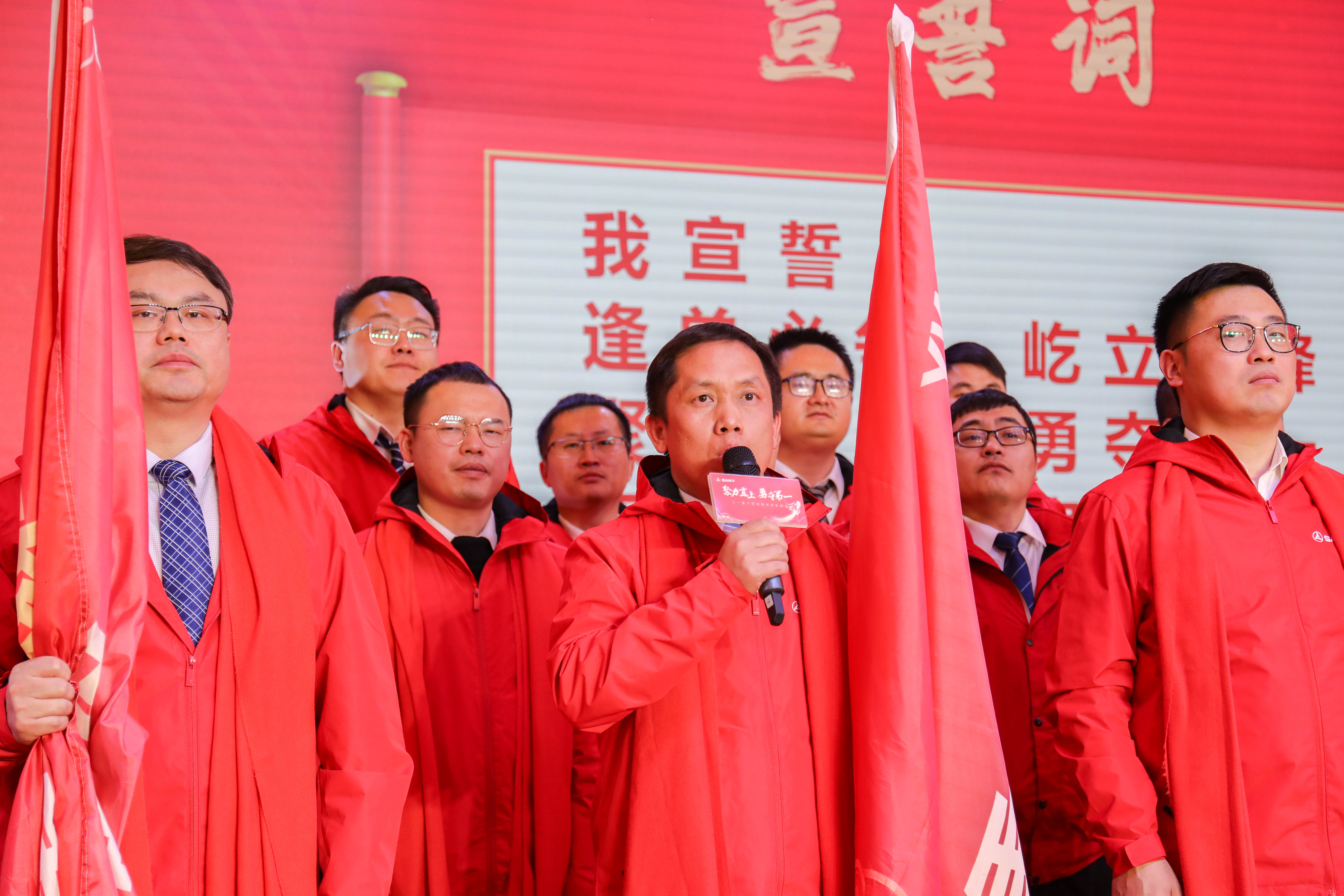 春雷惊天地,战鼓催征程。周万春先生上台挂帅,带领五大分公司总经理、新疆直营区、海外营销总经理签署2024年营销目标军令状,全力以赴、使命必达!随后,梁林河先生亲自向五大分公司总经理、新疆直营区、海外营销总经理授旗,七位部门领导接过旗帜后带领全体省经理挥动战旗,宣誓出征: