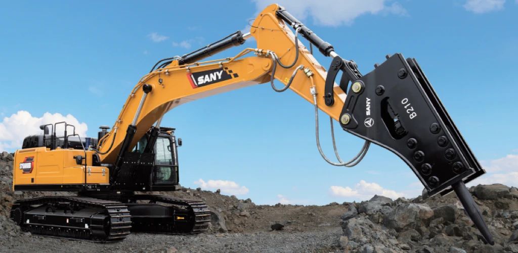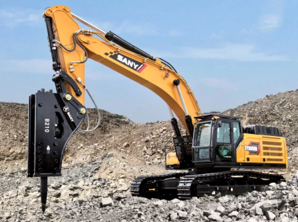 SY600HB标配205破碎锤,可选配210超大破碎锤,打击节奏稳定顺畅,不惧坚硬顽劣,适用于击碎路面和基岩及大型矿山等工况。