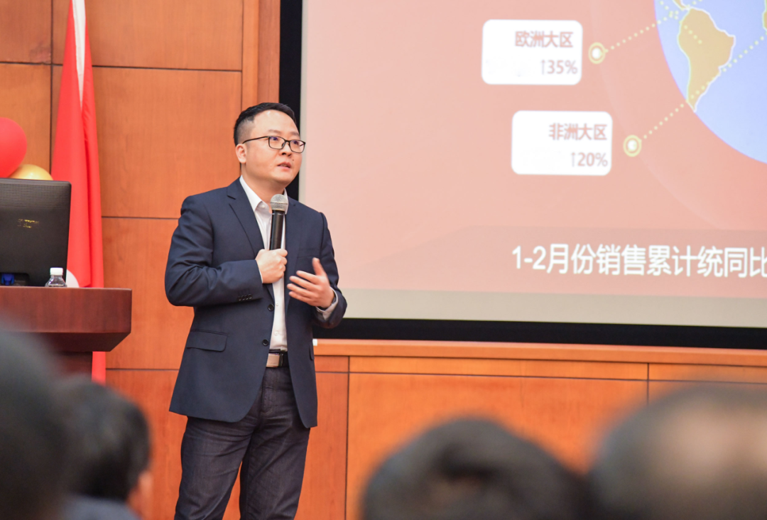 黄运明阐述了2024年充满机遇和挑战的市场环境和竞争格局,重申年度海外重点产品策略与目标,并表达了对出征将士和每一位团队成员的关心与鼓励。