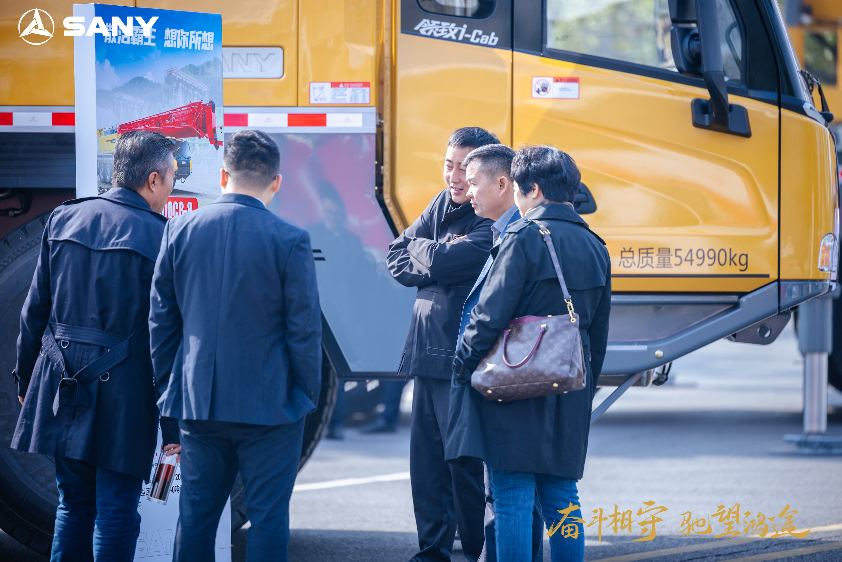 “新驾驶室确实好看,这一排很有气势。对部分客户来说,是第一次看到这么整齐、各个吨位切换新两室的机型。“很好看,很气派,新驾驶室确实好看。”