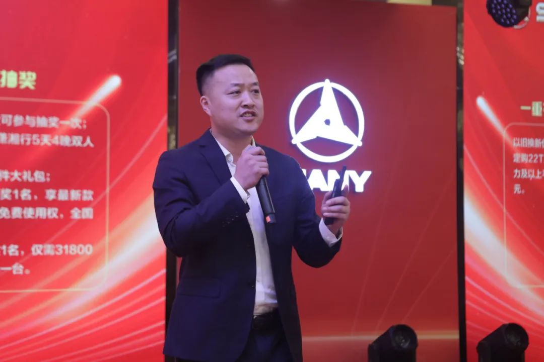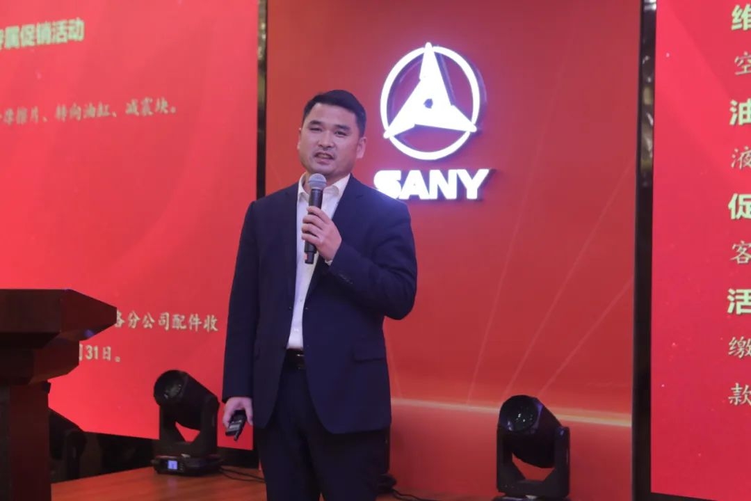 设备焕新、配件焕新,路机营销公司副总经理谭毅先生为大家揭晓本次活动中的福利优惠,史无前例的活动力度引得台下阵阵欢呼,路机营销公司服务支持部部长李盈杰先生也为大家带来了服务配件大礼包的优惠,会议气氛达到高潮。