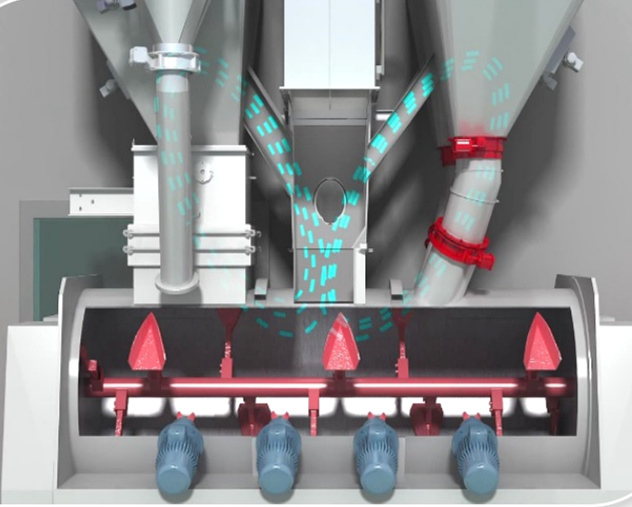 精准除尘控制,绿色、环保。主楼内料仓均采用高效强制主动收尘,摒弃滤袋正压被动除尘;各料斗内部气压自平衡技术,无透气滤袋,彻底解决生产过程中滤袋结块、冒灰问题。整体粉尘排放小于8mg,优于国家标准,打造绿色环保的设备运行环境。