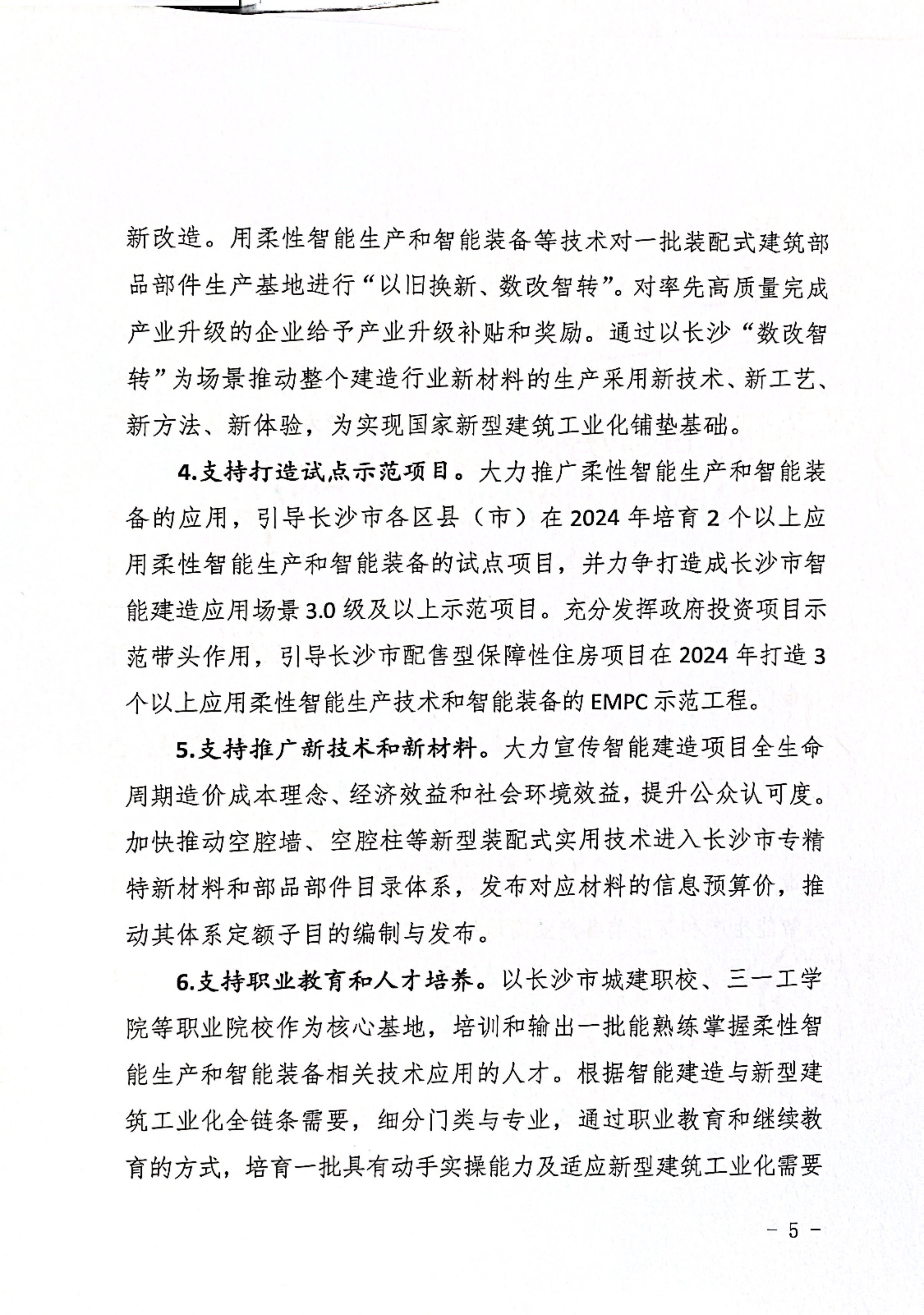 4月22日,长沙市住建局印发了《长沙市住房和城乡建设局关于支持柔性智能生产和智能装备产业集群创新发展的十条措施》。这是政府为深入贯彻落实习近平总书记关于“因地制宜发展新质生产力”的指示精神,按照省政府在装配式建筑产业倍增计划中提出的“对龙头领军企业实施'一企一策’帮扶”和《湖南省推动大规模设备更新和消费品以旧换新实施方案》(湘政发(2024)5号)的工作要求出台的措施。