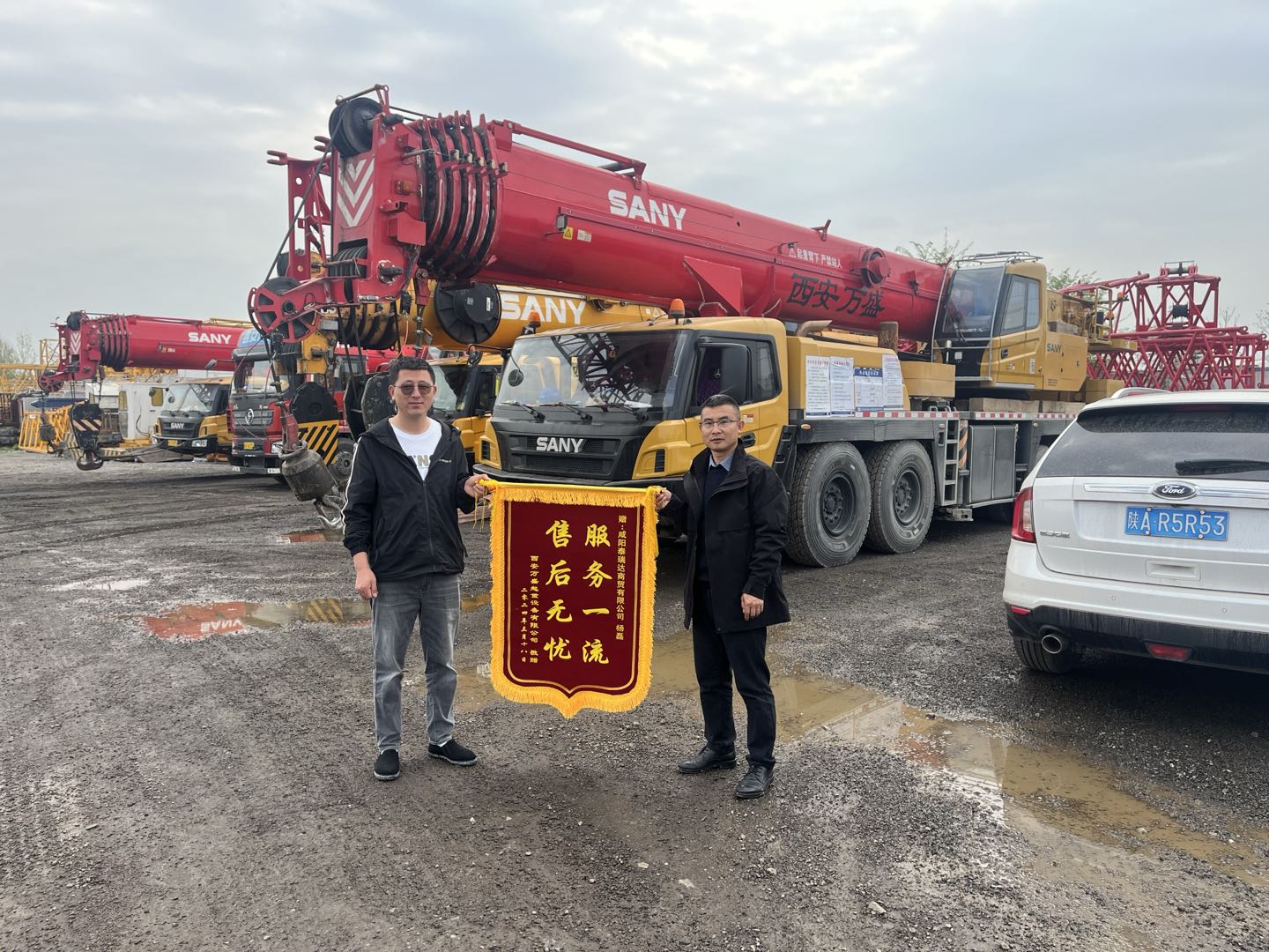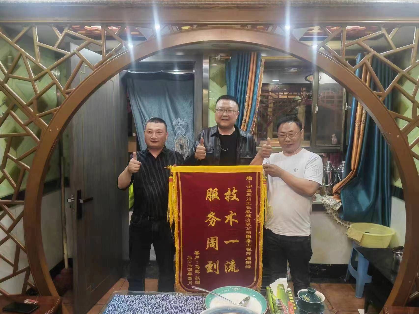 客户购买450吨后,因操作手经验欠缺,他24小时熬夜现场跟车服务,并对操作手进行安全及操作培训,直到施工完成才离开现场,客户十分感动,主动赠予锦旗。