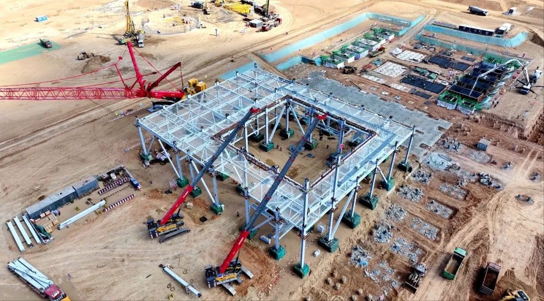 近日,在内蒙古能源集团准大电厂2×100万千瓦煤电一体化扩建项目中,SAC24000T、SAC5000C8-8、STB1600T6等多台好体育投注官网起重机正在如火如荼地进行施工。