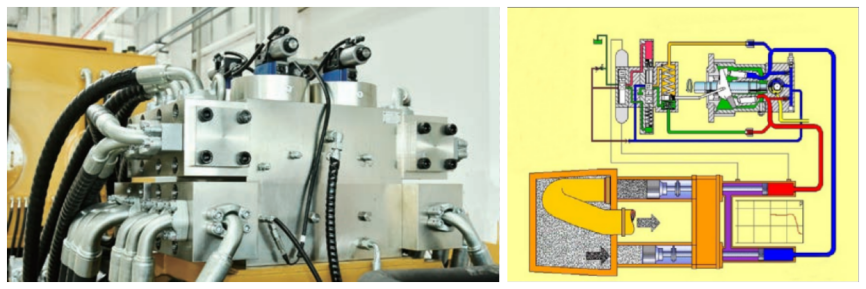 液压系统采用多组动力合流技术:即使部分动力失效,剩余动力仍然可以小排量泵送,有效避免动力失效导致堵管,保证高可靠性。