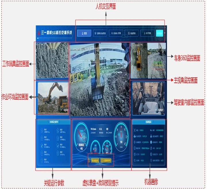 故障诊断、故障预测功能:将挖掘机侧显示屏存在的故障诊断信息同步投射到遥控端操作大屏,同步有效预测并提醒潜在故障发展趋势。