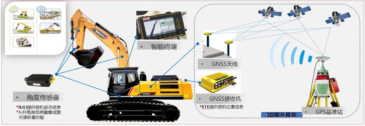 智能精准定位功能:通过加装2D引导系统,为操作手提供实时的高度和坡度指导;3D引导系统实现数字化施工与设计底图结合,引导操作手高效高质量完成高精度工作。