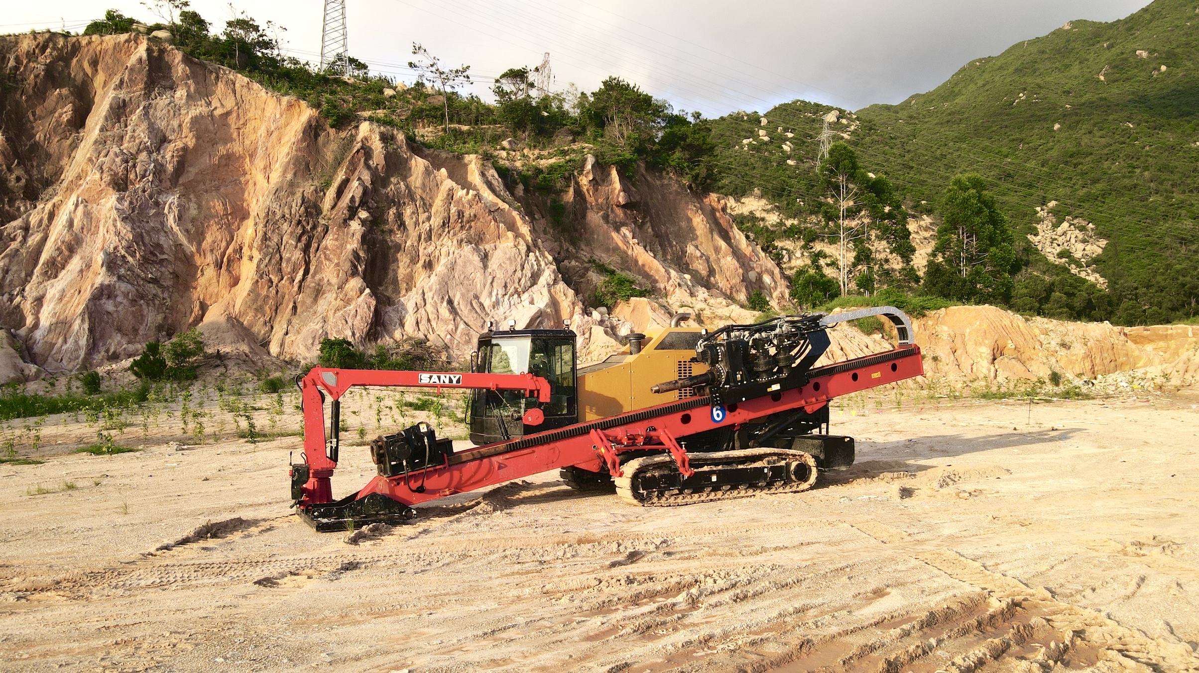 本次投身台山新材料供水项目的SD1000S水平定向钻机是好体育投注官网全新打造的国四重量级选手。该款设备采用机、电、液协同开发,各个模块均可进行理想匹配;采用四马达四减速机推拉结构,双马达回转结构,动力头多级变速,标配回拖增力,施工能力行业领先;同时,SD1000S还配备了一键操作、手机遥控等功能,实现了半无人化操作;行走无线遥控,可以确保设备和人员安全,转场更加快捷,十分适用于本次工况。
