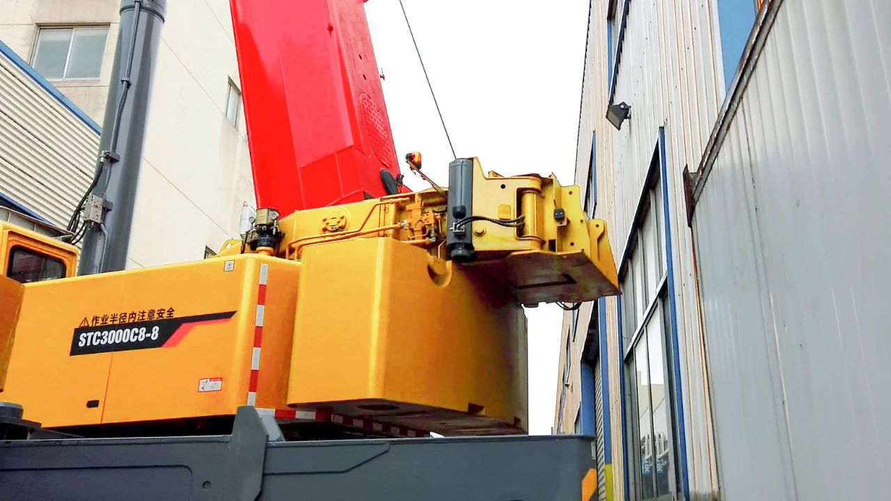 负责本次吊装的衢州金宁吊装魏总介绍:“用其它车当然也能干,但是没有STC3000C8-8方便,第一天吊重最重2.2吨,我只用13吨固定配重就行;第二天最大吊重5.4吨,刚好在随车携带配重(27.5t)工况范围内,也不用额外运输配重,我们只需要一位驾驶员,这样给我们和客户都省了成本。主要是快,这个场地配重车进来都不好停,能一台车干完是最好的。”