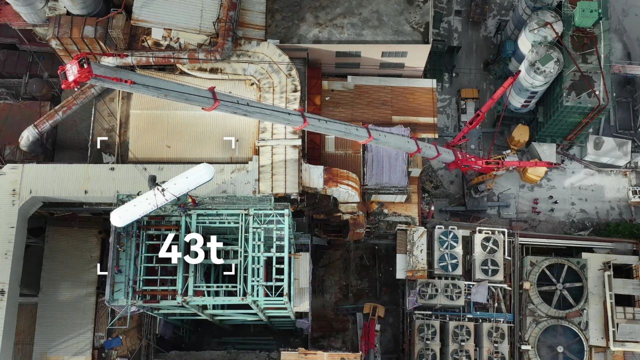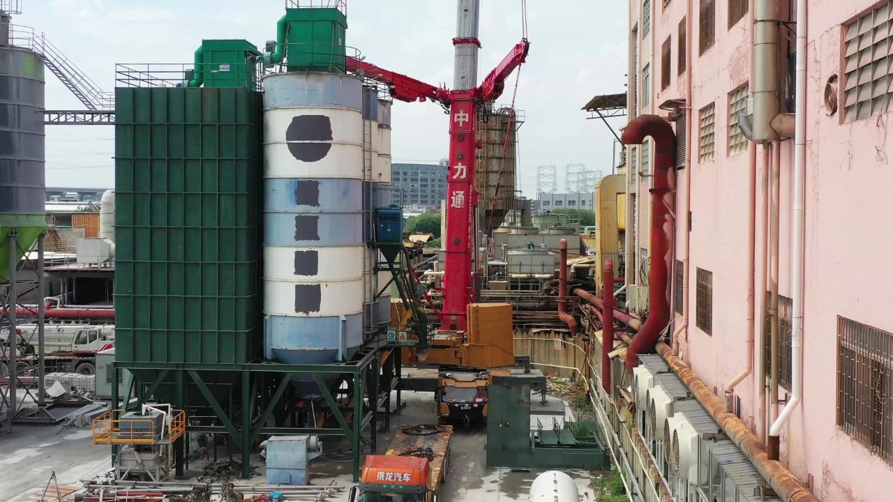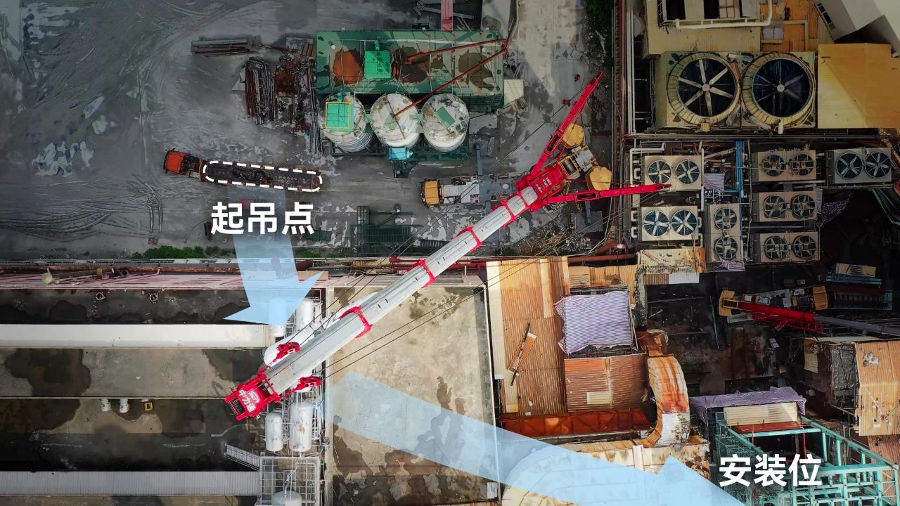 这又是一个常见的吊装典型案例,由于我们建设发展太快,许多十几二十年前建的工厂面临着产能、环保等各种新问题,需要进行改造。但老城区、老厂区往往规划不足,几十年不断“见缝插针”,留给吊车作业的空间简直是“下脚的地方都找不到”。