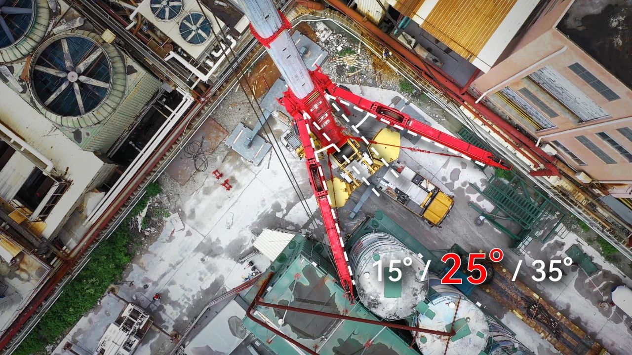 超起打开角度25°(15°/25°/35°三档可调),可降低超起与建筑干涉、碰撞的风险。