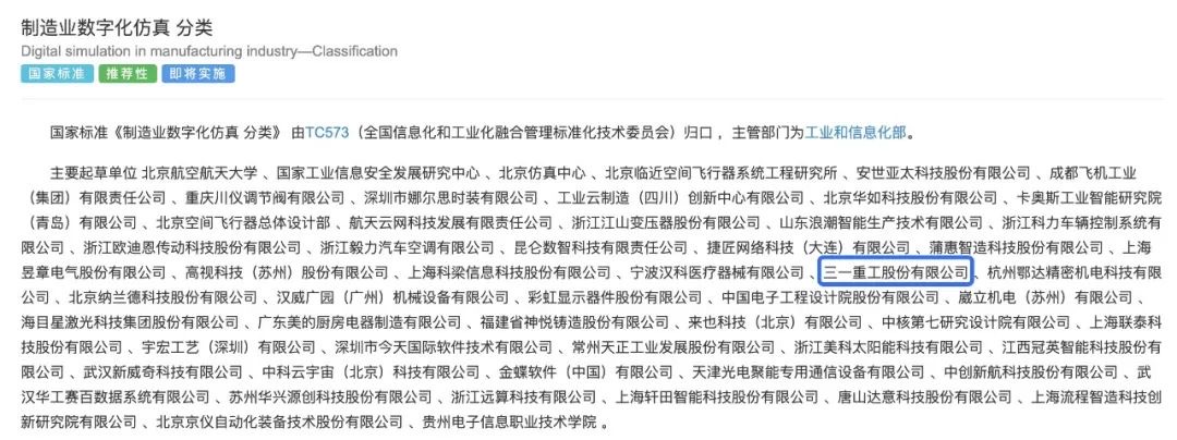 近日,国家标准化管理委员会批准《制造业数字化仿真 分类》国家标准(编号:GB/T 23024-2024)正式发布,并将于2024年12月01日起开始实施。好体育投注官网作为唯一的工程机械制造企业深度参与了该项标准的研制工作。