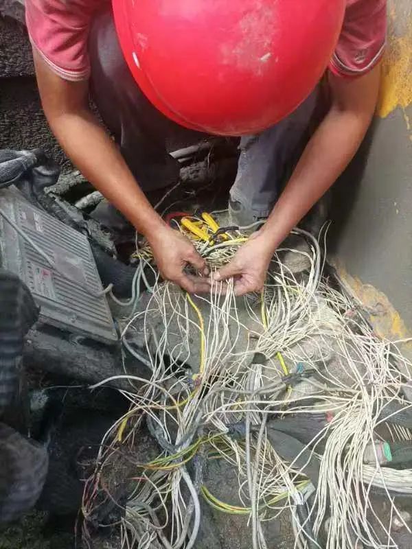 第二天,开始逐根修复线束,维修空间的温度在60度左右,断线部位狭窄,工程师长时间半蹲,衣服也 始终处于潮湿状态。面对高温和身体极限的双重考验,冯瑞涛脑海中全是客户殷切的眼神期盼。忍受着高温和疼痛,经过13个小时的连续工作,终于在次日晚上9点完成了烧蚀线束的修复。