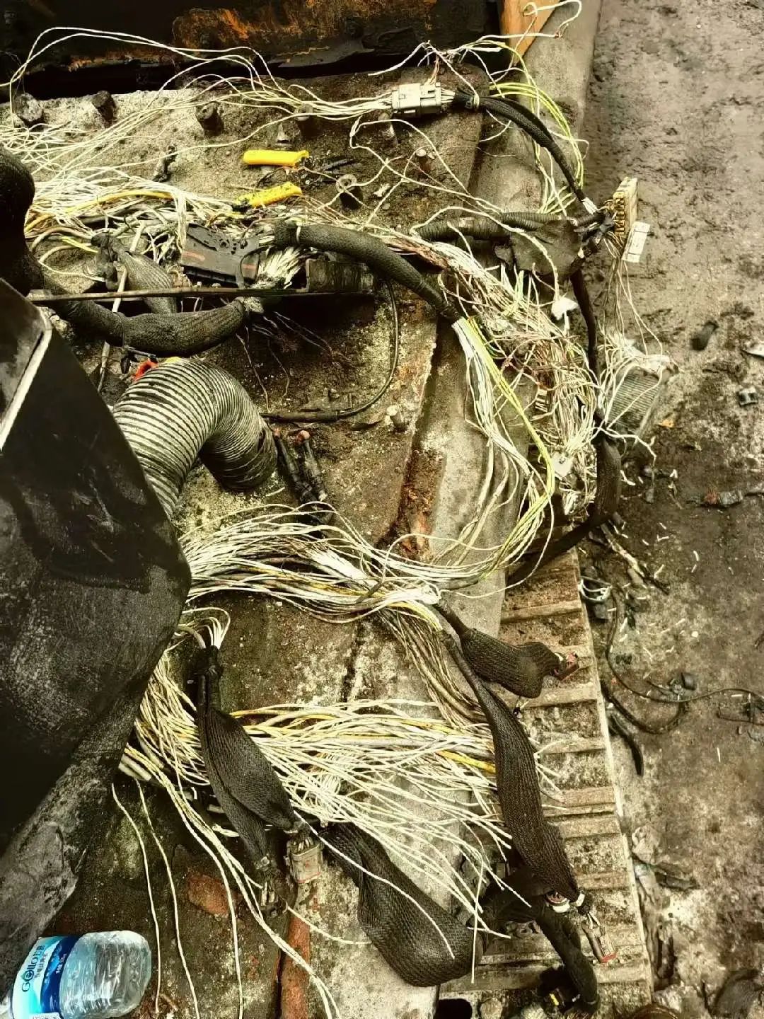 正当客户为修复设备焦虑不已时,好体育投注官网服务工程师冯瑞涛抵达现场。他仔细地对设备进行全面检查,发现驾驶室内部线束以及空调蒸发箱部位的线束烧蚀情况非常严重。设备在长时间高温矿渣的环境下作业腐蚀老化,使得修复工作变得异常困难,几乎无从下手。