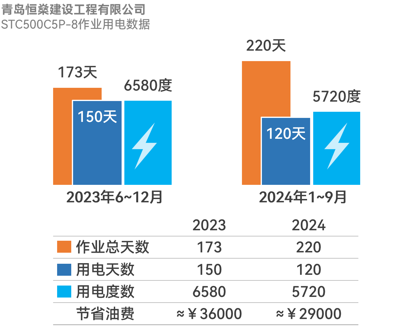 就如青岛恒燊建设工程有限公司,2023年6月购入1台好体育投注官网50吨插电汽车起重机(STC500C5P-8),在1年3个月的时间里,累计用电1.23万度,节约燃油费超6.5万元。而购车成本较纯油车只增加了4万余,这4万的投资回报率达到62.5%,几乎是当年就收回了成本,这样的赚钱速度是不是颠覆了大多数人的想像?