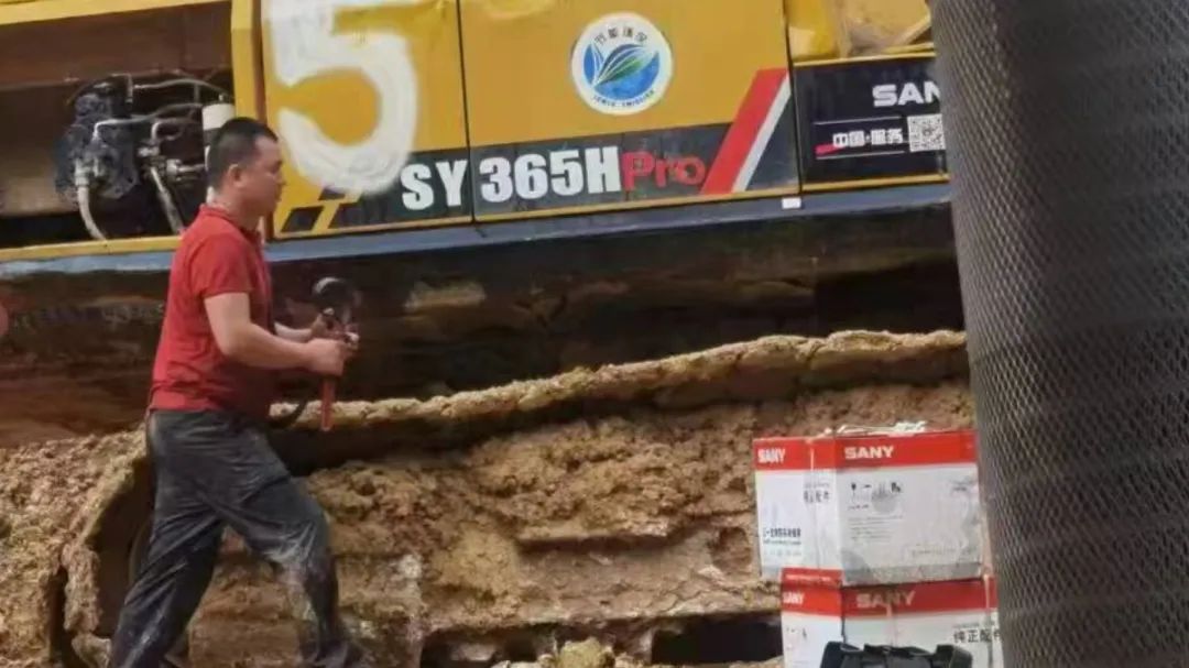 近日,在海南省澄迈县红岗农场里,客户正在使用的SY375突发故障,施工陷入困境。客户通过易维讯平台发出了求助信号。海南海龙鹏服务团队迅速响应,派遣刘良兴和郭浩两位服务工程师前往现场进行处理。