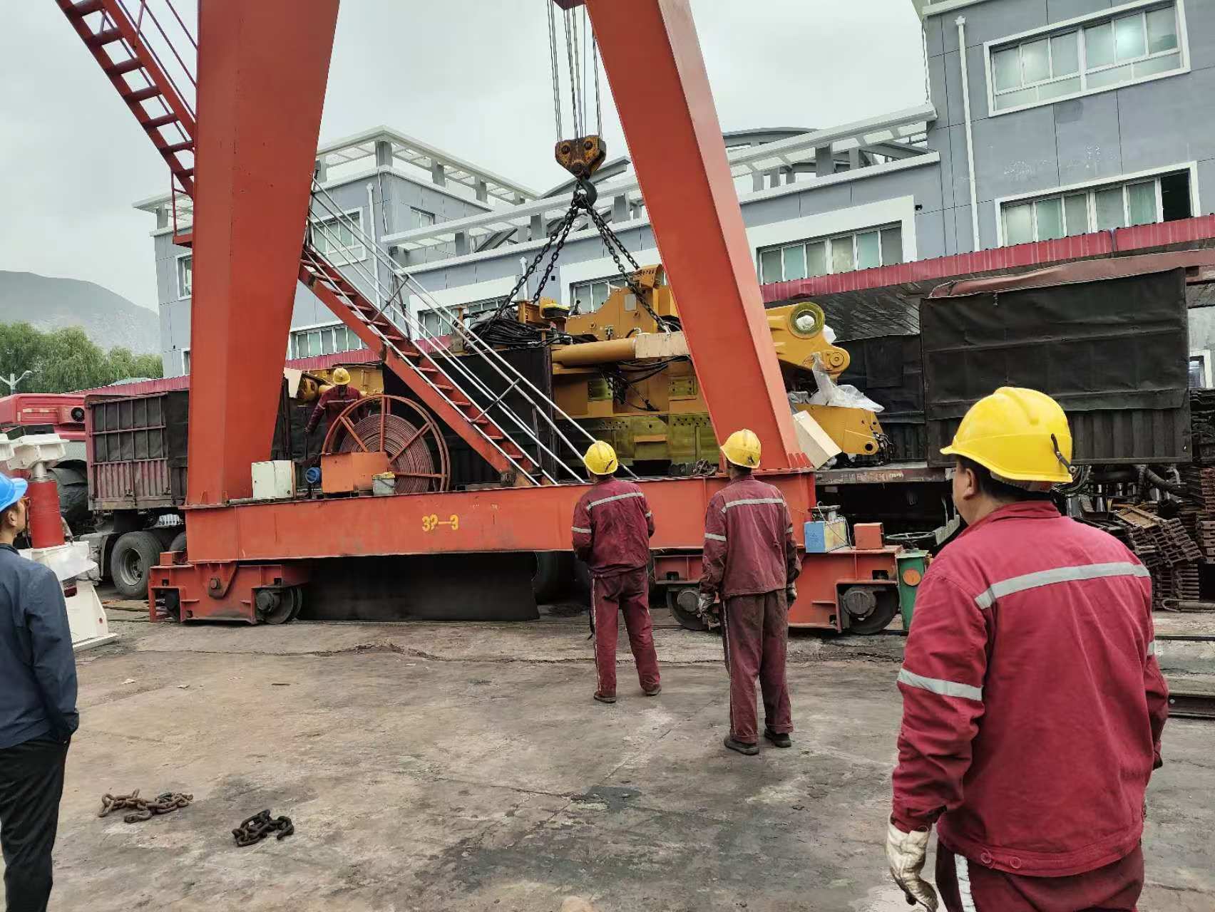 这台EBZ318M-2H掘锚机拆解后由七辆运输车承载,计划在9月30日运抵至窑街煤电进行卸货交付。然而计划赶不上变化,卸货工作进行到一半,天空阴沉了下来,还下起了大雨,这显然会影响到设备的卸货效率。为了保证设备的顺利交付,面对这样的恶劣天气,好体育投注官网重装服务工程师依然冒雨坚持作业,圆满地在24小时内完成了卸货装配工作。