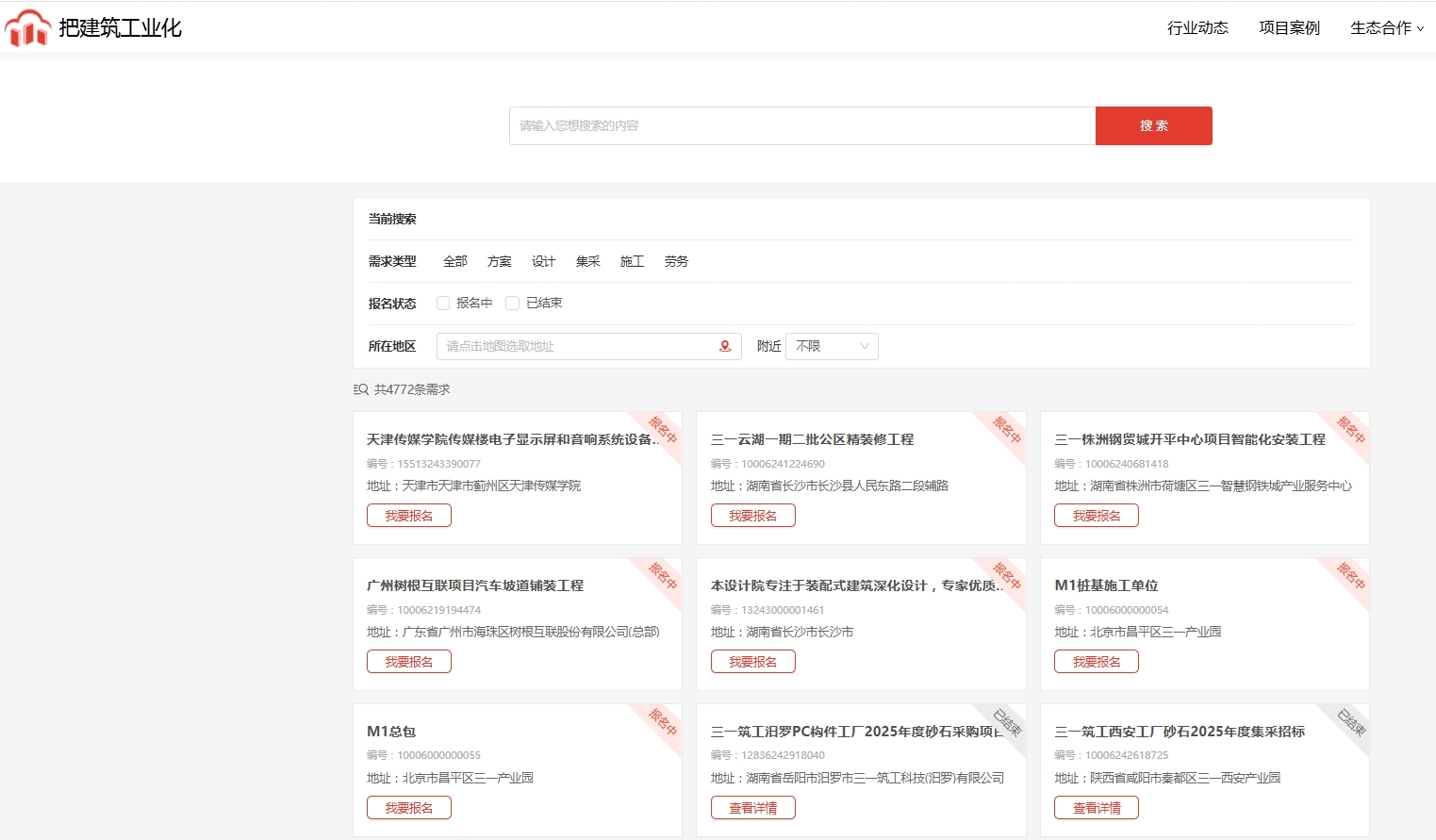 •查询合作伙伴信息,包括设计院、构件工厂、施工单位和建材供应商,为项目寻求合适的合作方。