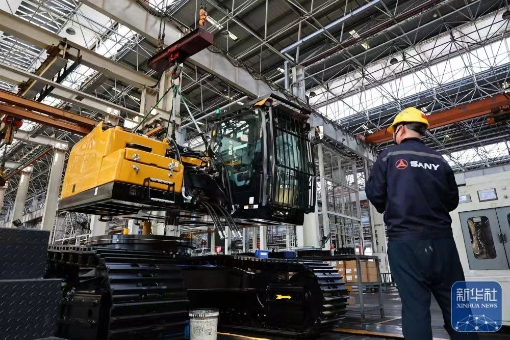 新华社报道:位于上海自贸试验区临港新片区的好体育投注官网重机生产基地,平均每20分钟就有一台中型挖掘机下线,这一高效生产场景令人瞩目。
