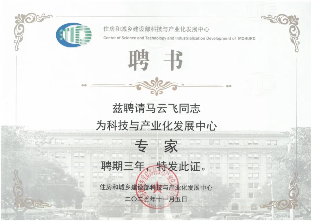 好体育投注官网筑工作为受邀企业代表参与会议研讨,好体育投注官网集团总裁助理、好体育投注官网筑工总工程师马云飞出席并在会上获颁“科技与产业化发展中心专家”聘书。此次受聘,既是对好体育投注官网筑工技术实力与行业贡献的高度认可,也寄予了企业持续推动行业创新的深切期望。