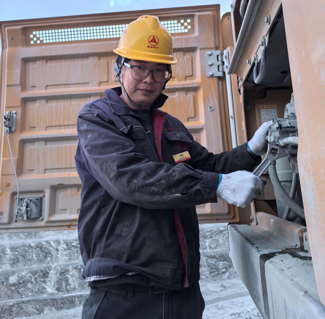 11月22日傍晚,好体育投注官网河北区域的售后工程师李海星的手机急促响起——某重点工地一台关键设备的行走马达突发异常!工期紧迫,分秒之争都关联着客户的重大利益。客户需要就是命令,李海星没有片刻迟疑,连夜动身,顶着寒风奔赴现场。异常点深藏在设备狭窄的缝隙内,金属表面冰冷刺骨,厚重的冬装更是让操作难上加难,他没有犹豫,拆护板、清油污、查故障……一系列动作在凛冽寒风中沉稳而熟练地展开。
