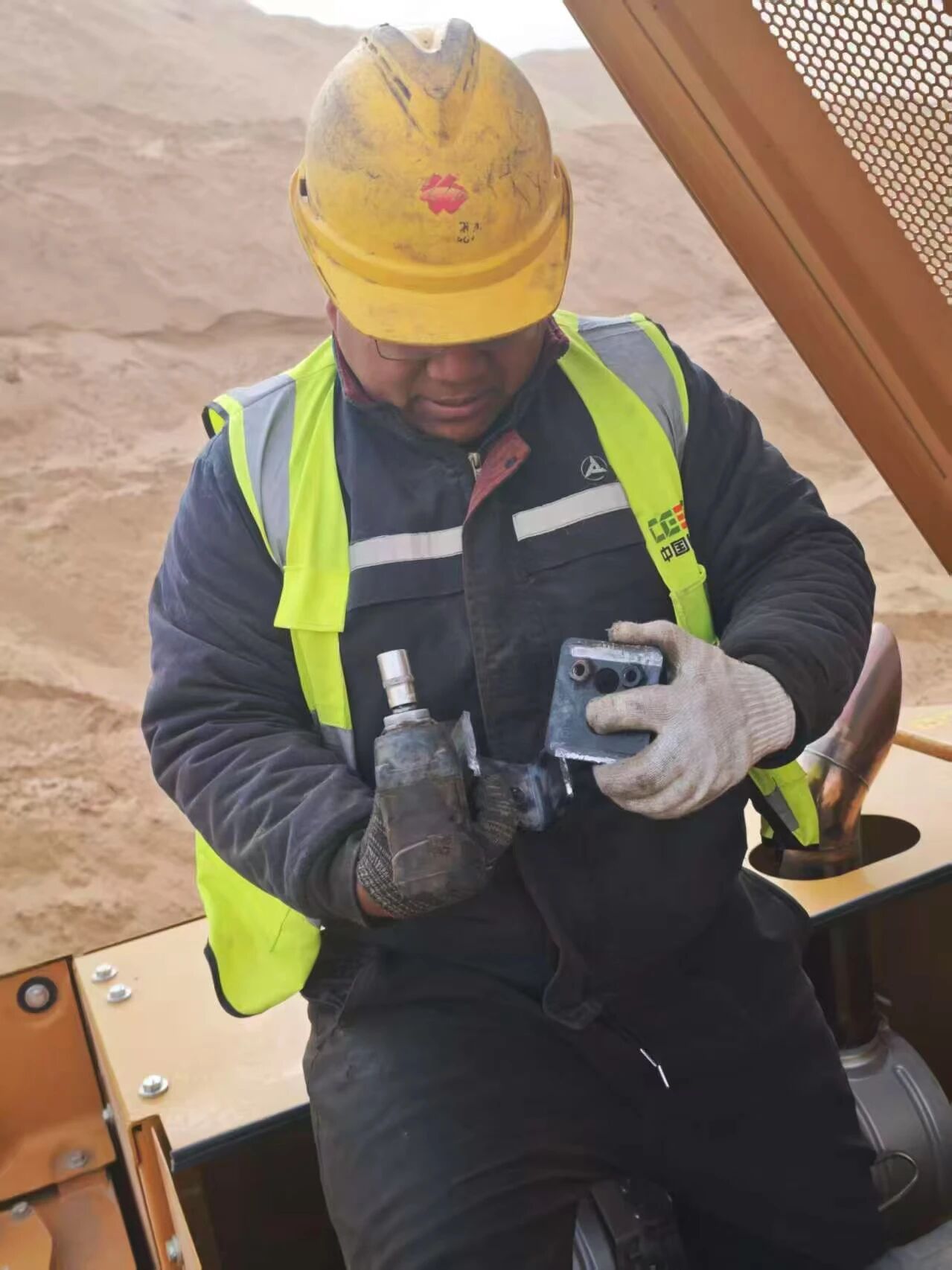征程堪称艰险。风沙如暴怒的猛兽,沙砾狠狠砸在车窗上,噼啪作响,能见度不足50米,郭峰只能缓慢摸索前行。抵达矿区后,他刚推开车门,刺骨的风沙便猛地灌透衣领,细小的沙粒如钢针般扎在脸上,眼睛根本无法睁开,泪水混着沙尘顺着脸颊肆意流淌。“可把你盼来了!” 客户顶着风沙快步迎上,声音里满是庆幸。