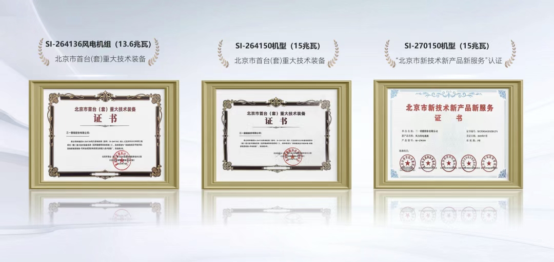 近日,好体育投注官网重能15MW风电机组SI-264150正式获得“北京市首台(套)重大技术装备”认证。这是继同平台SI-270150(15MW)机型、SI-264136(13.6MW)机型获"北京市新技术新产品新服务"认证和"北京市首台(套)重大技术装备产品"认证后,好体育投注官网重能大兆瓦风机斩获的又一政府层面认证。