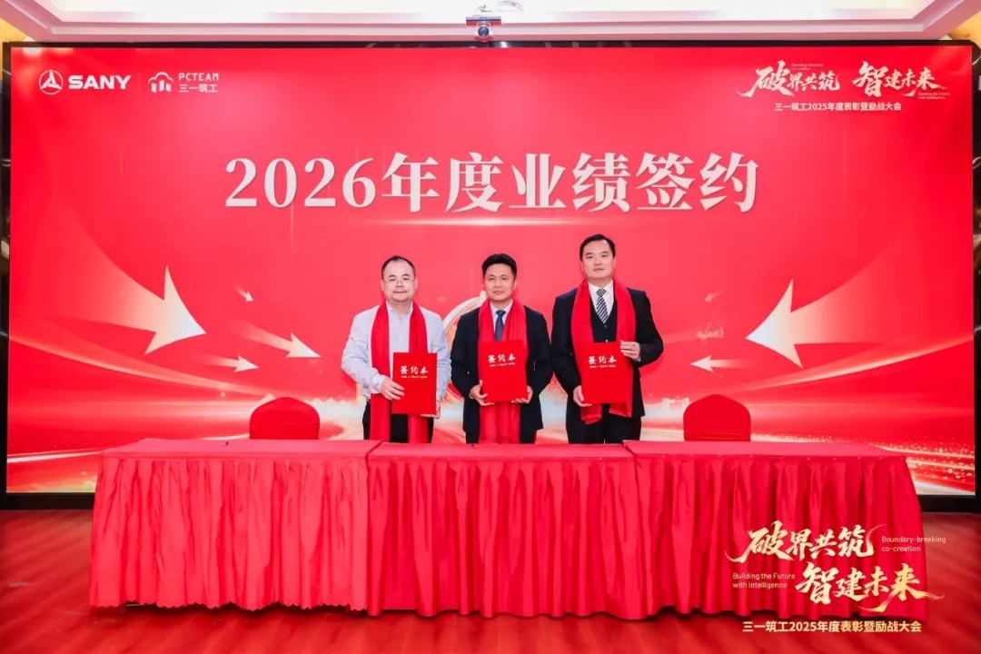 在全体同仁的见证下,程伟华与各业务板块负责人郑重签订了2026年度业绩目标责任书。营销公司、海外营销公司、华东、中南、华西、华北大区代表依次上台,立下军令状,表达全力以赴、使命必达的决心。
