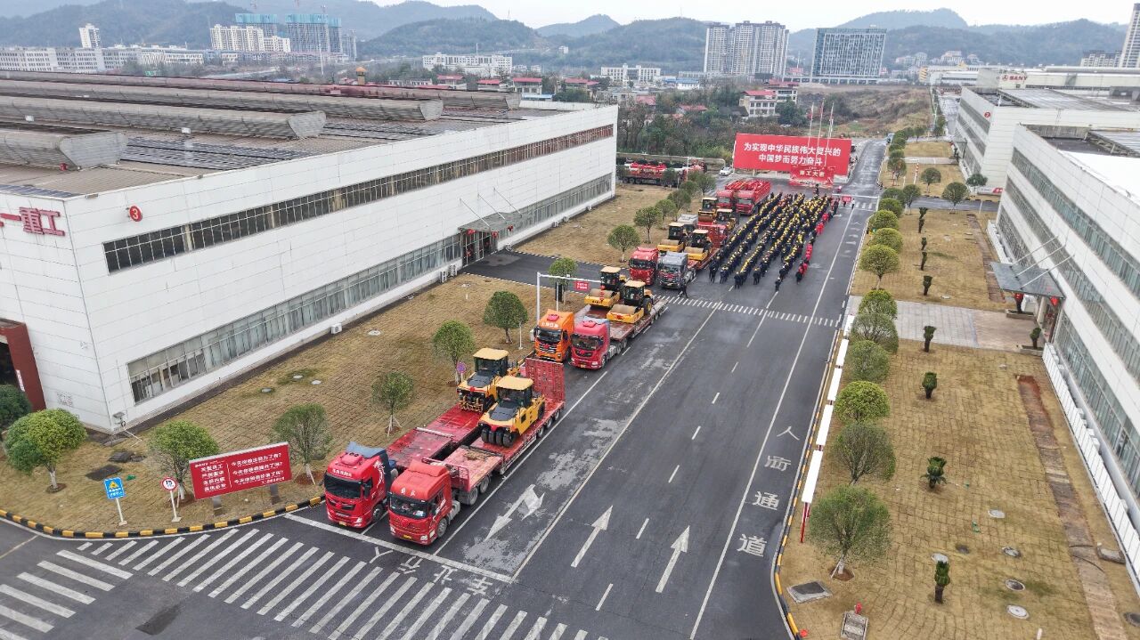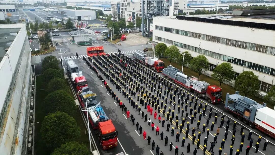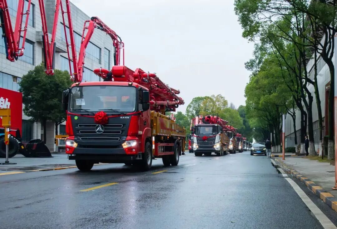 长沙厂区主干道上,泵车、车载泵、应急装备及冷藏车共计31台精品设备多箭齐发,列队出征。以强大产品矩阵强势出征,全面护航全国重点工程建设。