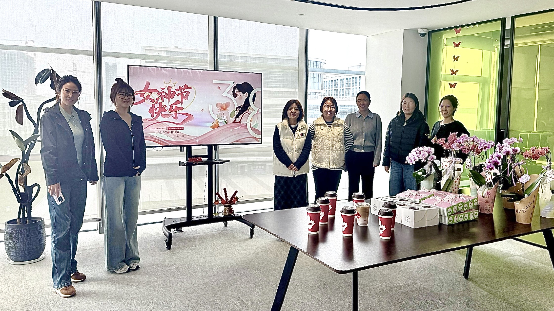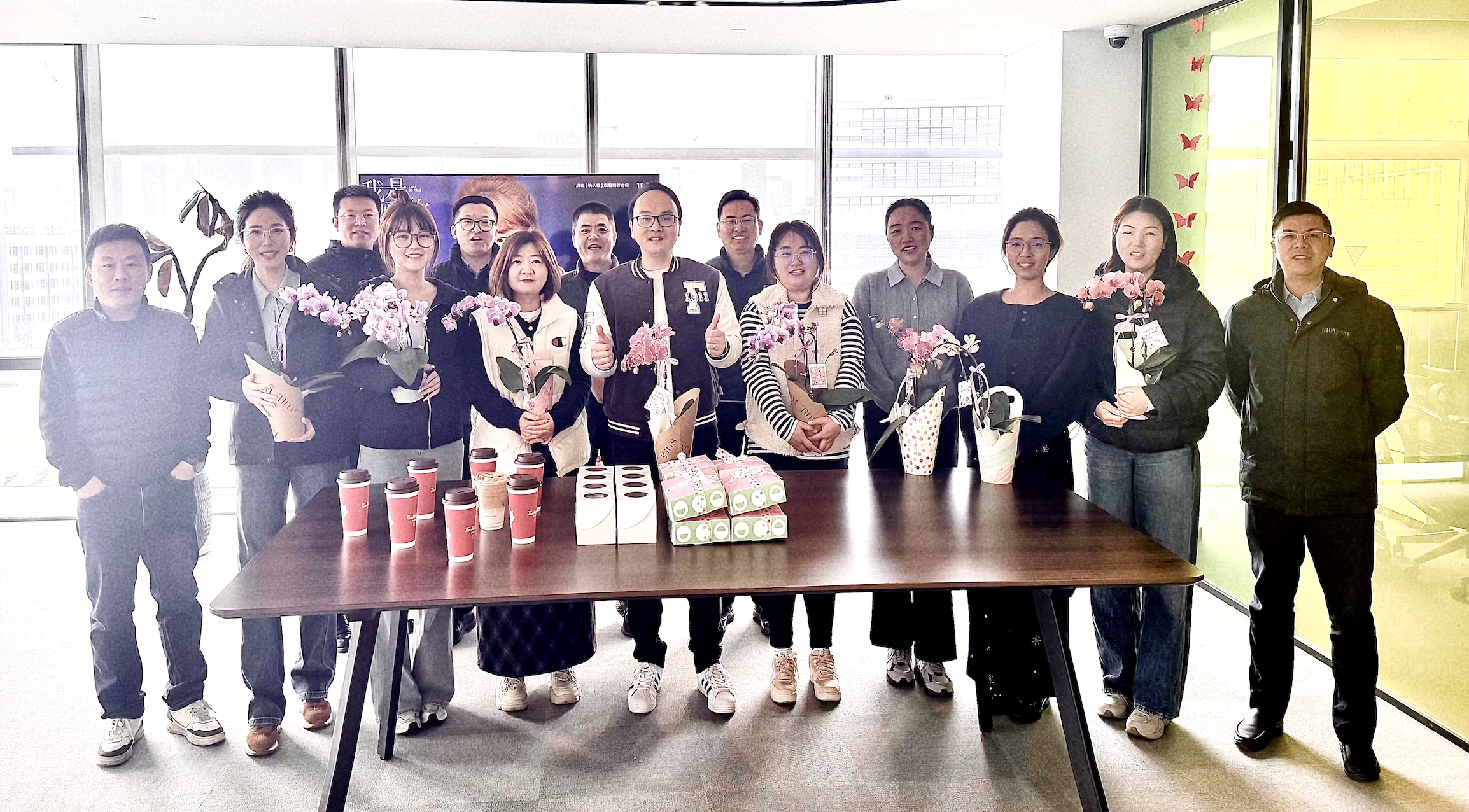 桩机总经理亲手将一束束象征优雅与幸福的蝴蝶兰送到女员工手中。“节日快乐!”“辛苦了!”声声问候伴随着花香,传递着公司对女性员工的敬意与感谢。除了寓意美好的蝴蝶兰,每位女神还收到了甜蜜的纸杯小蛋糕、香醇的现磨咖啡以及装满心意的饼干礼盒——甜蜜、温暖、用心,全都在这一份份礼物里。