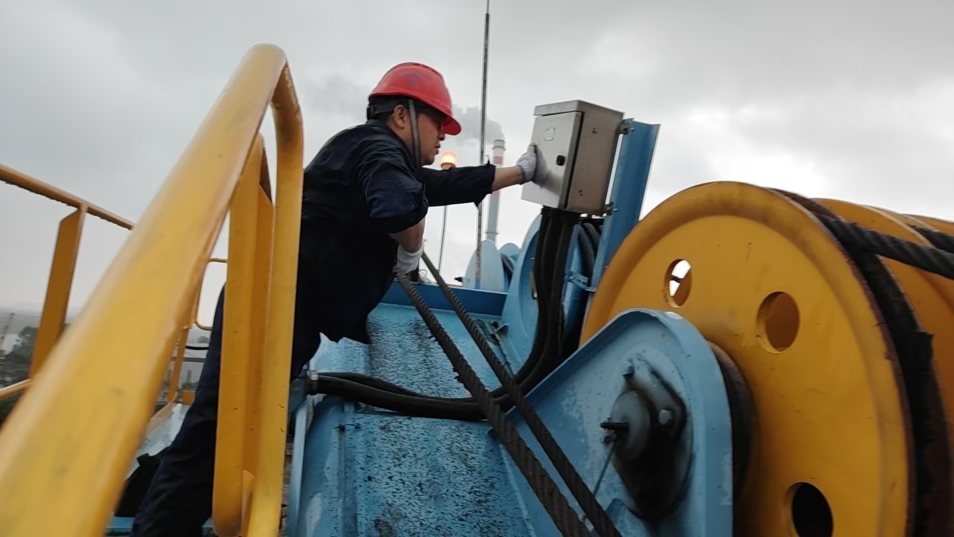 余伟曾面对一台门机吊具的偶发通讯故障,故障点位于35米高臂架顶端,为捕捉故障出现的那一瞬间,他登高静候5小时,从下午直至夜幕降临,终于抓住故障重现的短暂窗口,迅速锁定根源并成功排除。这场技术与耐心的双重考验,诠释了“客户需求在哪里,岗位就在哪里”的庄严承诺。