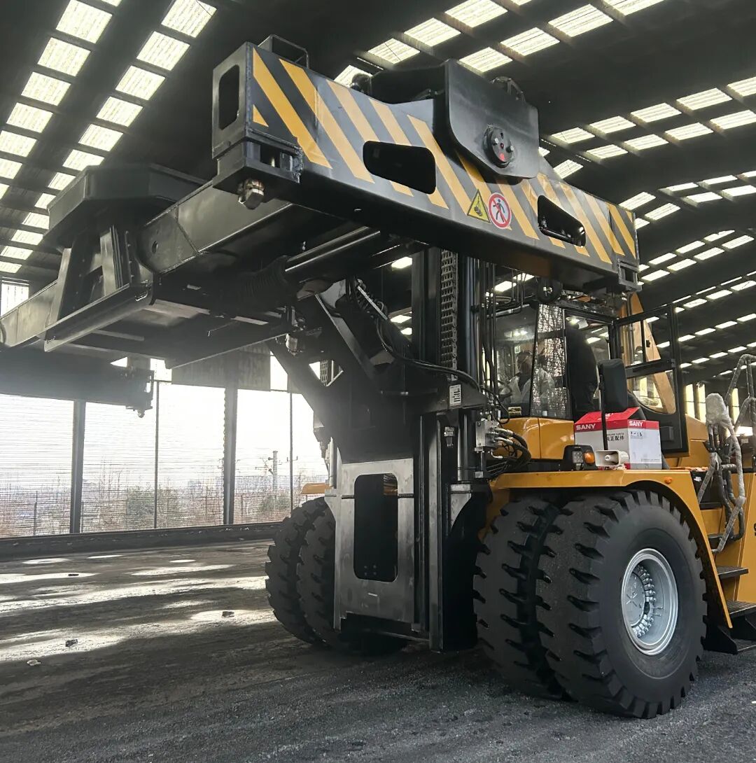 近日,一台专为铁路场景量身定制的46t重型叉车成功交付河北客户。该设备基于好体育投注官网成熟的重型叉车平台研发,创造性地运用“叉刀倒置”思路,在确保作业高度的同时兼顾安全性与通过性,从根源上打通了站台集装箱装卸的堵点。