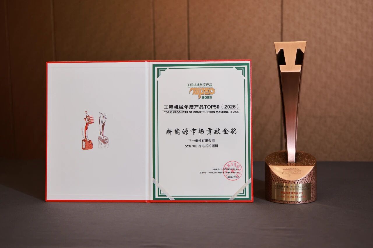 凭借在新能源领域的突出贡献,SY870E一举荣获“新能源市场贡献金奖”,用实力定义绿色矿山新标杆。
