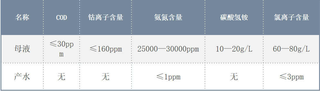 四氧化三钴是制备锂电池正极材料钴酸锂的主要原料,在其生产过程中会产生含重金属的高盐氨氮废水,在处理过程中,容易面临系统故障、能耗高等情况,最终导致管理维护困难、运行费用居高不下等问题。