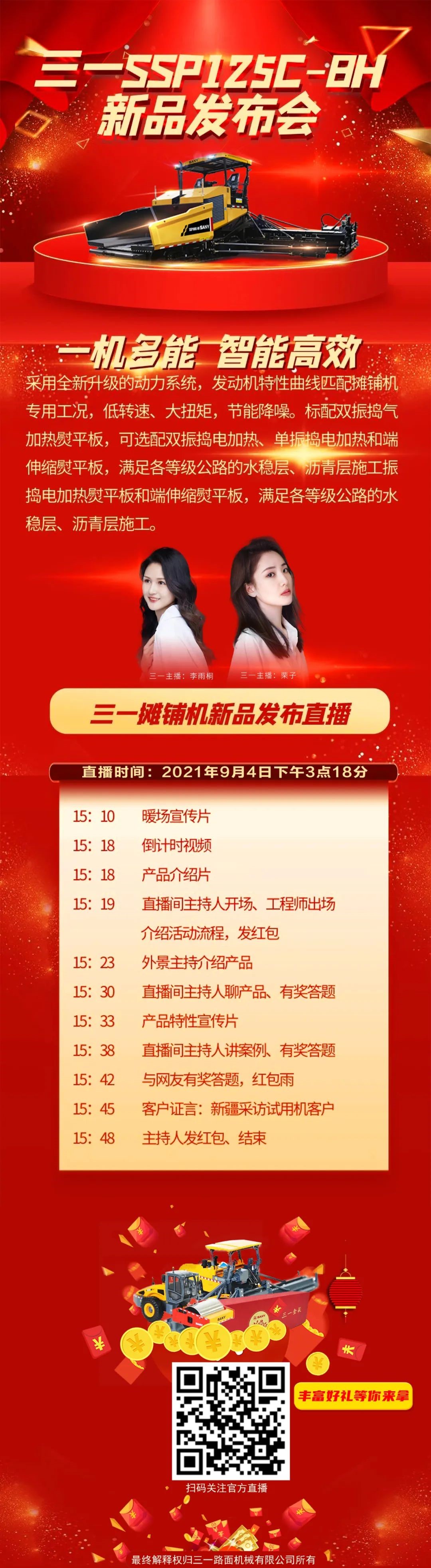 一机多能 智能高效9月4日下午3点18分好体育投注官网摊铺机SSP125C-8H新品发布会即将重磅来袭